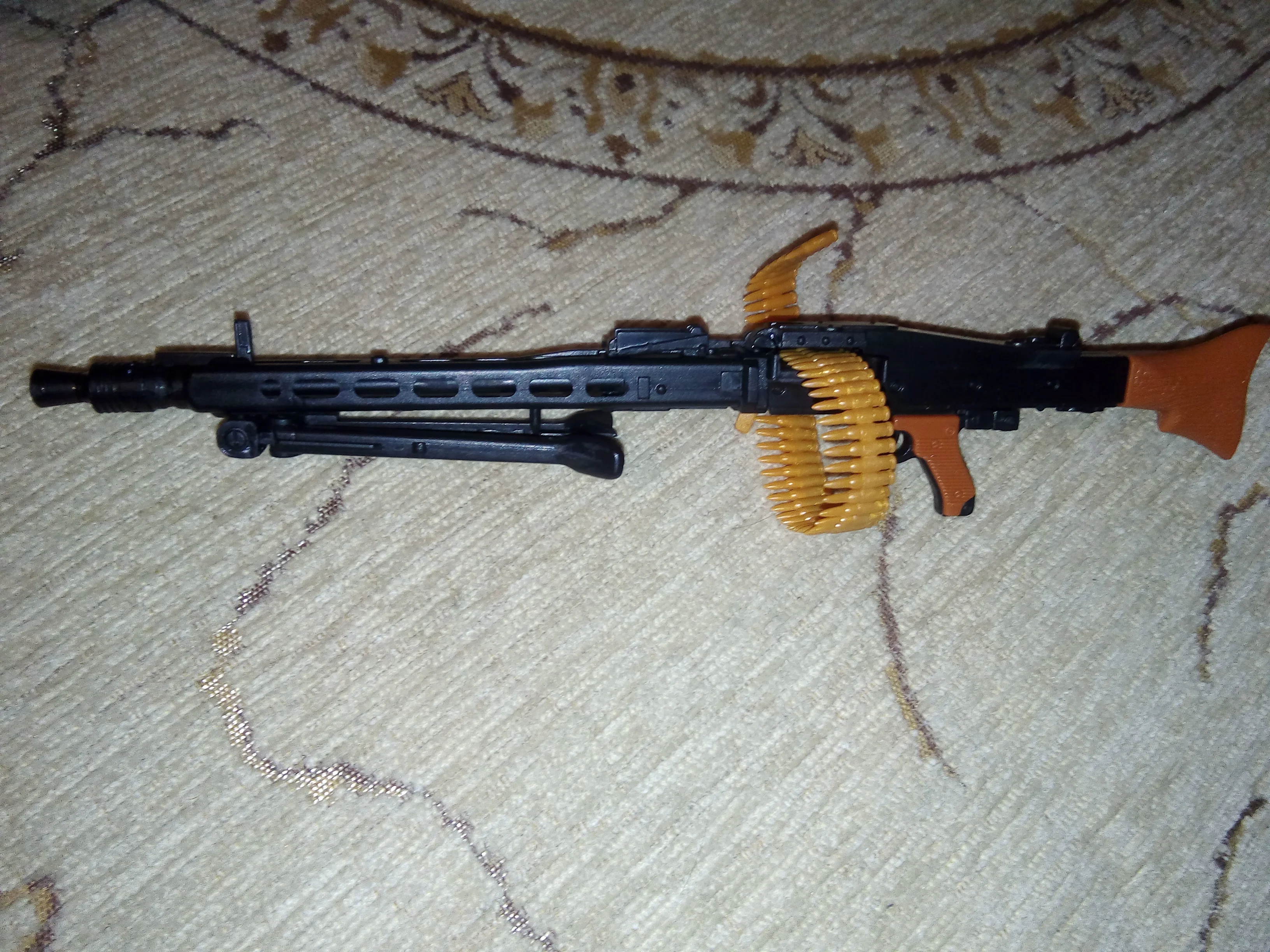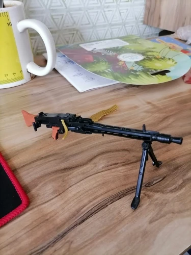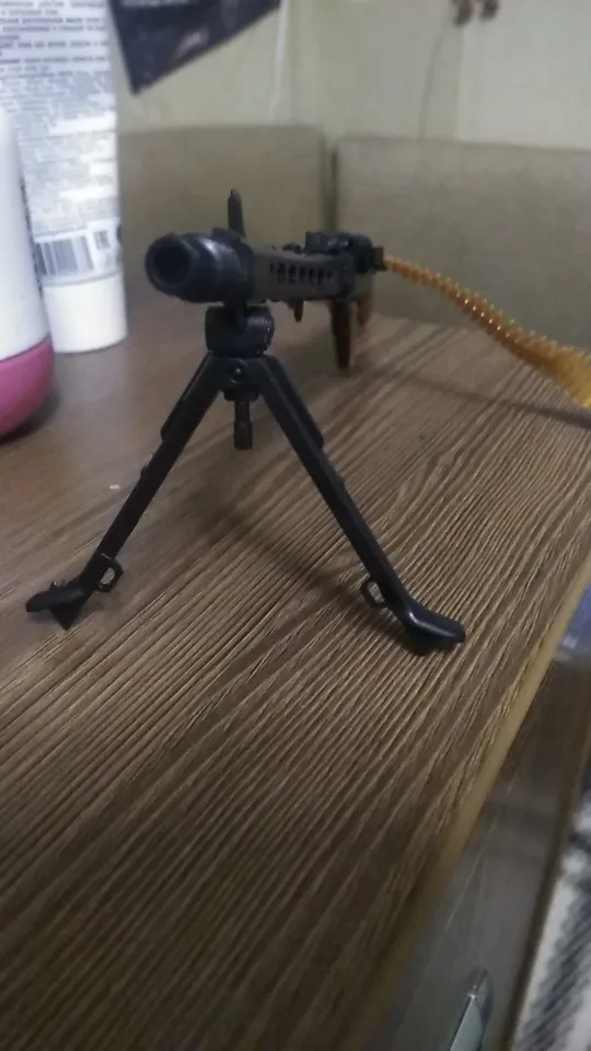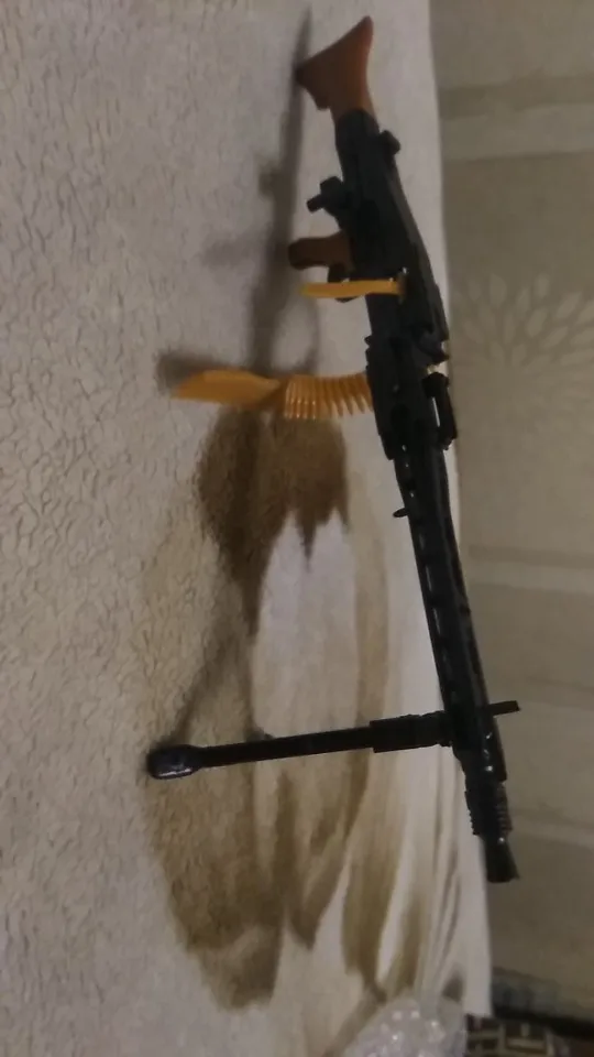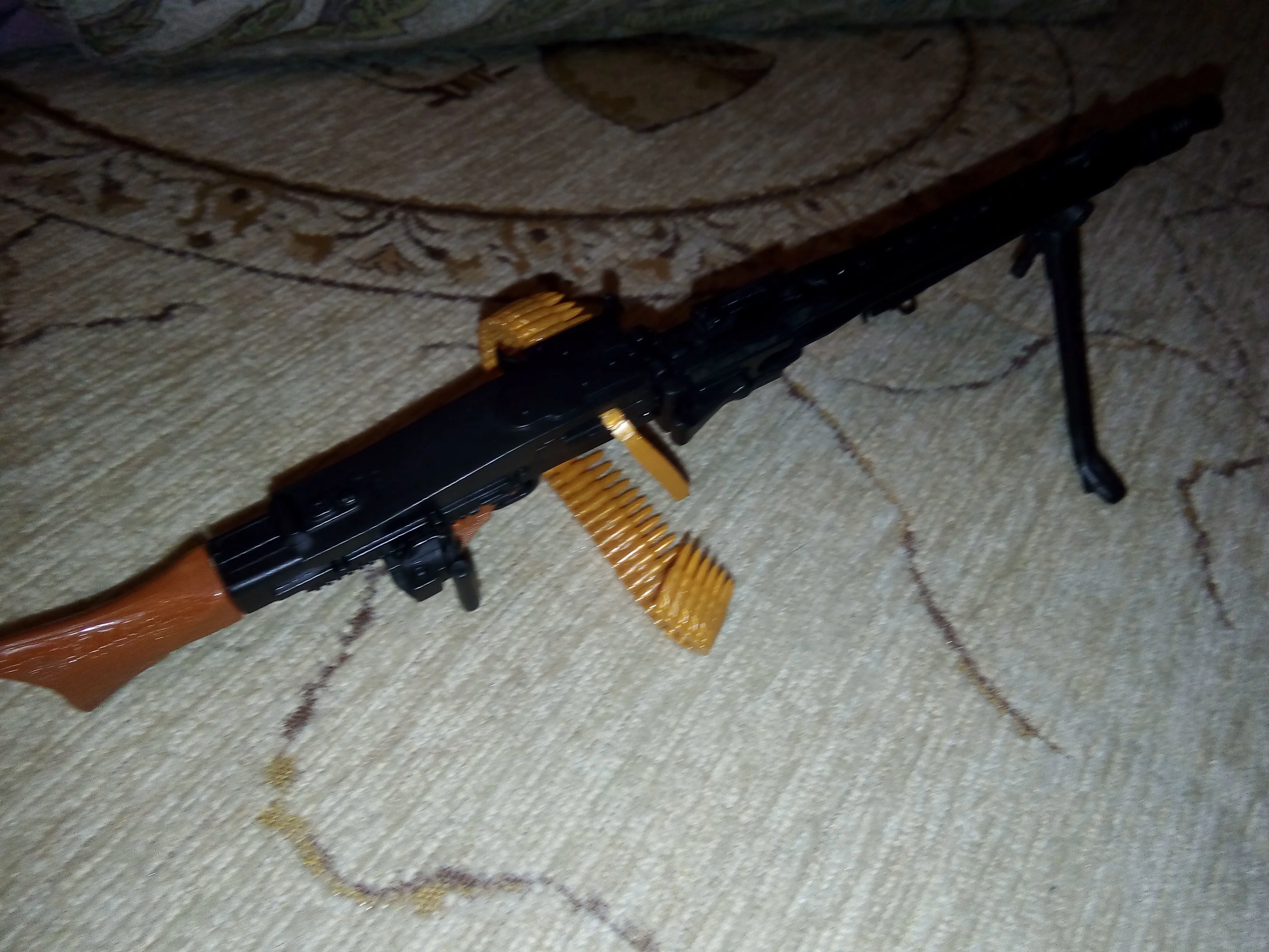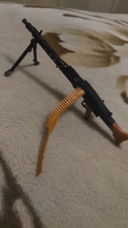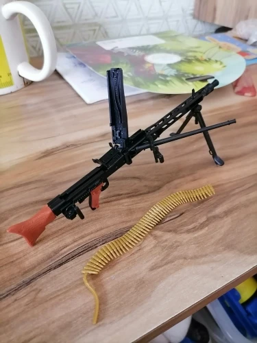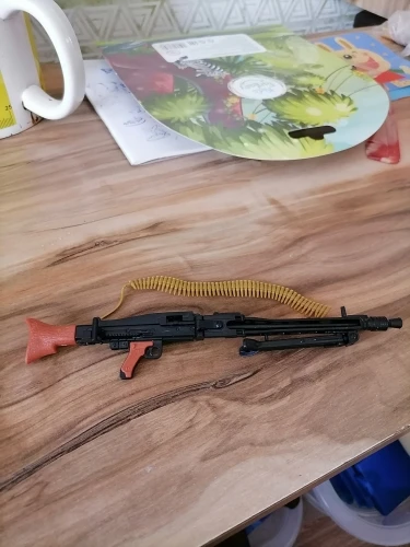 Подвижная сошка, затвор, выдвигается ствол, поднимается крышка загрузки ленты с патронами, сборка заняла 15-20 минут. Доставка до Екатеринбурга 2 месяца, трек не отслеживался. Ребенок доволен, к покупке советую.