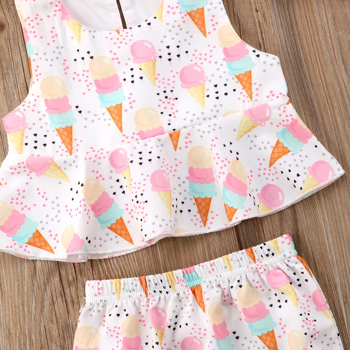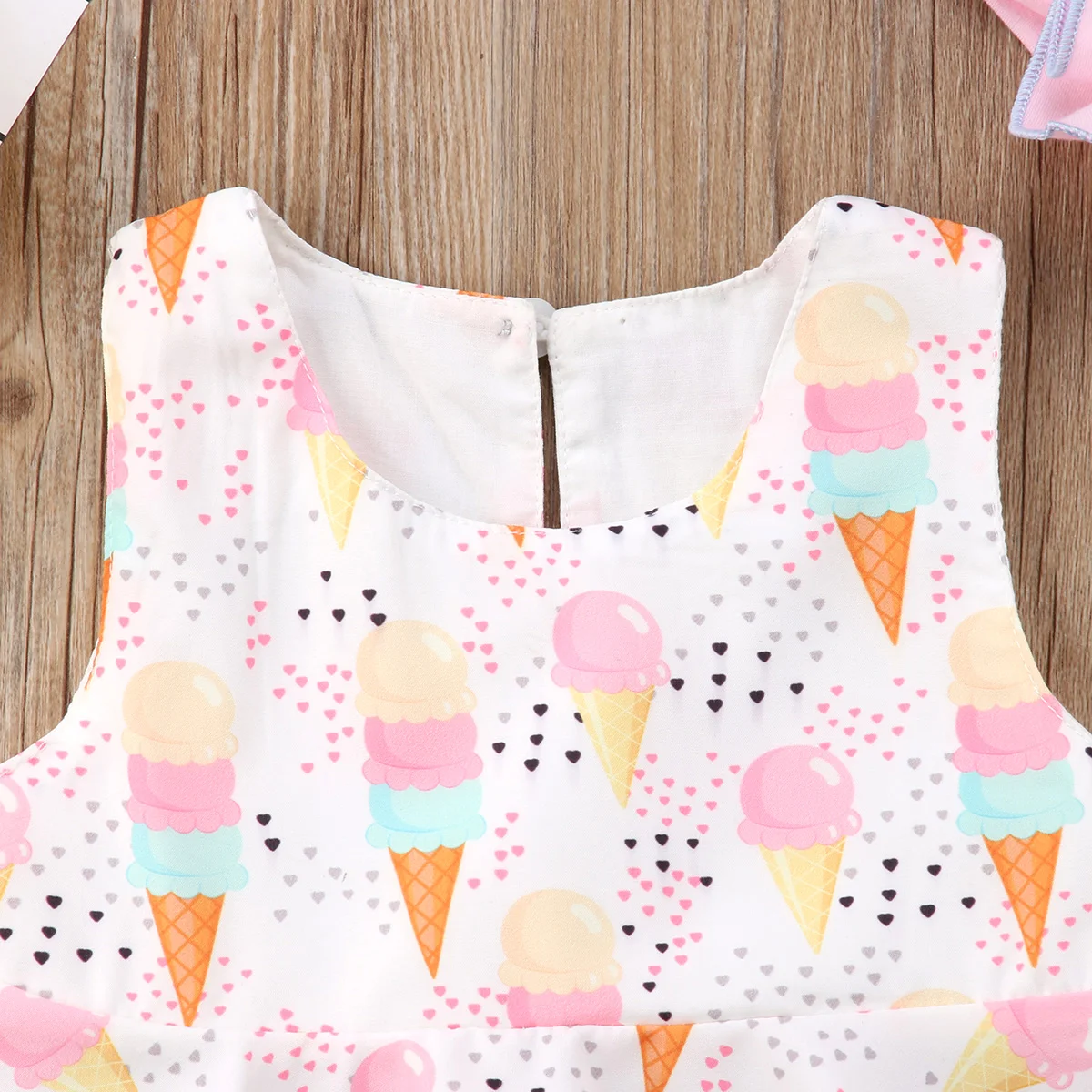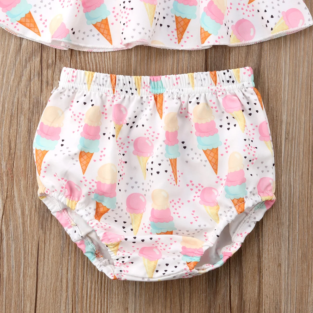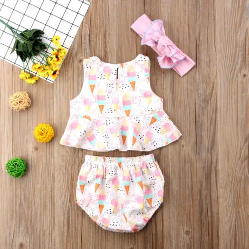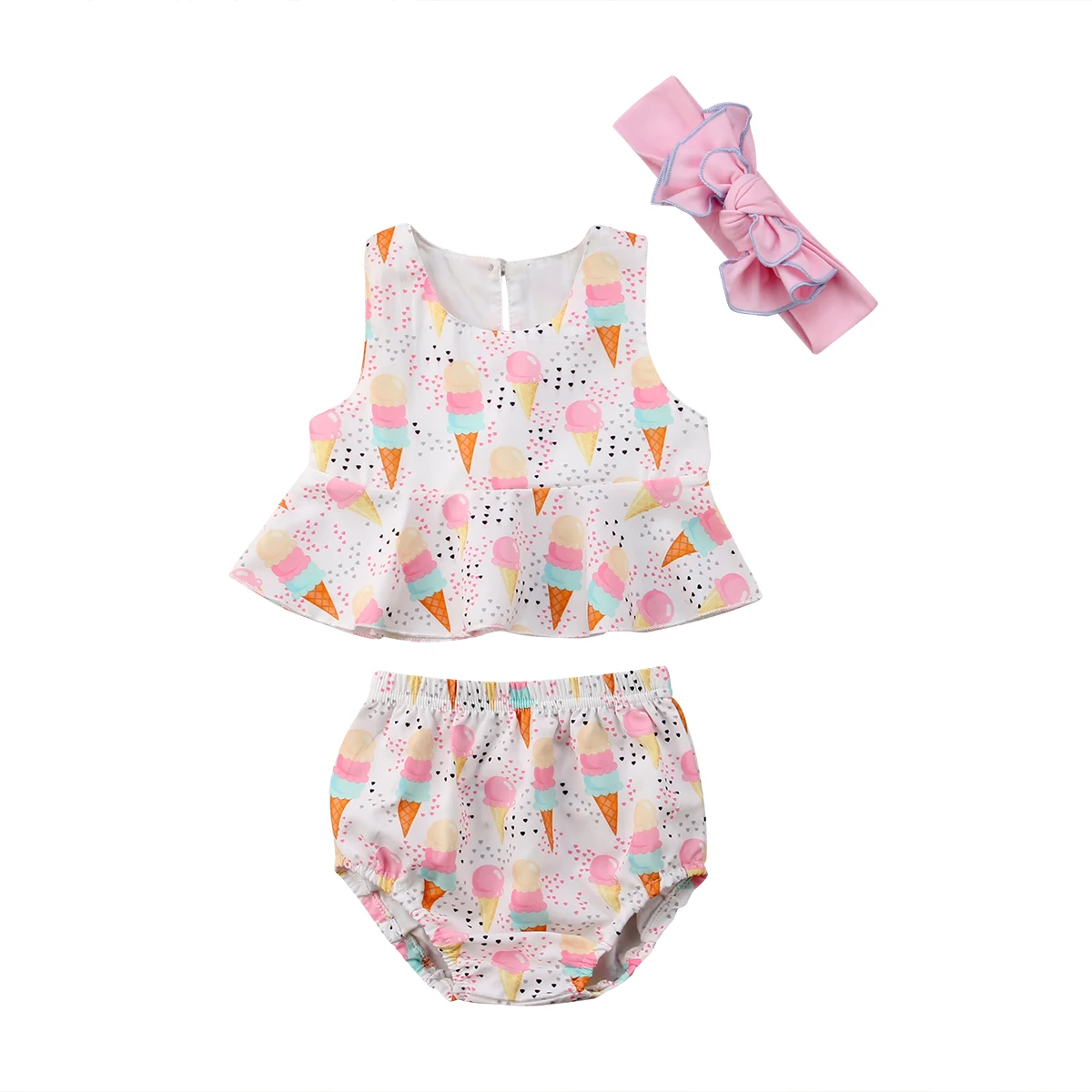 3 шт., милые трусы с принтом мороженого для маленьких девочек, шорты, повязка на голову, комплект одежды, одежда для маленьких девочек