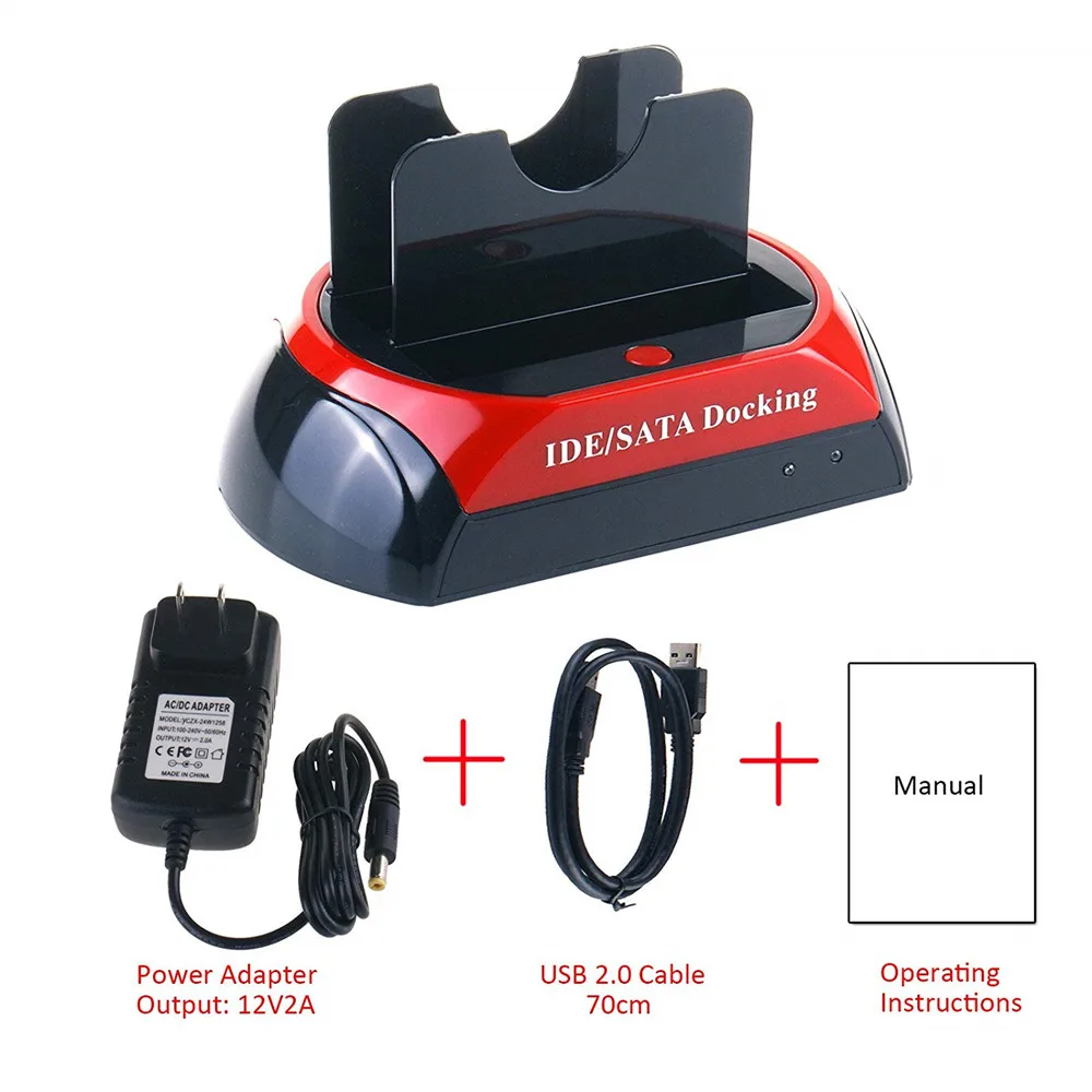 2-Bay HDD док-станция USB 2,0 для SATA IDE 2,5/3,5 дюймов внешний корпус для жесткого диска 2,5 "3,5" IDE SATA I/II/III HDD SSD