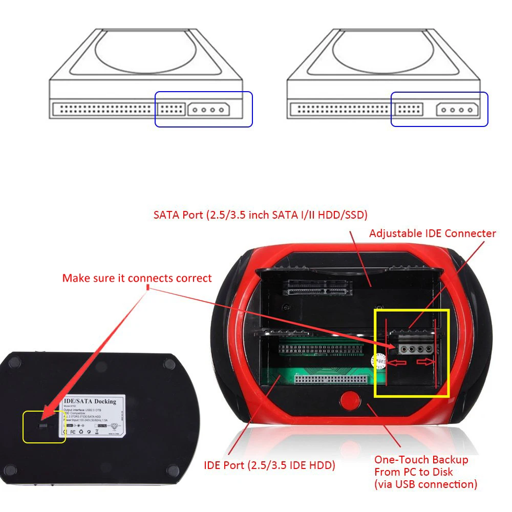 Универсальная совместимость: 1 IDE порт + 1 SATA порт, с регулируемыми разъемами IDE, поддержка s большинства 2,5 "/3,5" IDE / SATA I / II / III жесткого диска и SSD, максимальная Поддержка s 8 ТБ интерфейс SATA жёсткий диск, IDE / SATA интерфейсы Максимальная Поддержка 1 ТБ жёсткий диск. Пожалуйста, выберите правильную модель, чтобы избежать ошибки в заказе. (Примечание: Пожалуйста, не заменяйте жесткий диск, когда продукт работает.) Передача данных: бесплатная установка инструмента, удобный внешний считыватель жесткого диска. Легкая передача данных с 2,5 "/3,5" IDE/SATA или SATA жёсткий диск к компьютеру через порт USB 2,0, USB 2,0 скорость передачи данных до 480 МБ/с.. Резервное копирование в одно касание: С помощью функции One-Touch легко установить данные и документы с вашего компьютера на внешний жесткий диск. Примечание: используйте эту функцию. Установите файл драйвера, который будет отправлен вам по электронной почте. Операционная система: совместима с Windows XP / Vista / 7/8/8,1/10 (32/64 бит), Mac OS 10,10 или более поздней версии. Отформатируйте диск в соответствии с вашей операционной системой (Linux и Mac OS совместимы с FAT32 и exFAT, Windows совместима с FAT32, exFAT и NTFS). Обмен данными между 2 различными размерами и HDDs разных типов. Легко передавать данные с вашего 2,5 "/3,5" IDE/SATA или SATA жёсткий диск к компьютеру через порт USB 2,0. Нет необходимости добавлять корпус или открывать чехол с помощью отвертки. Регулируемый штырь питания для различных жестких дисков IDE. (Это регулирует ключи в нижней части продукта)