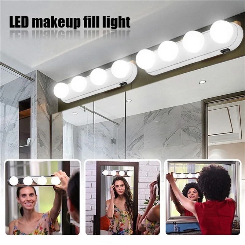 4 лампы зеркальный светильник Батарея настенный светильник 5500K зеркало с подсветкой Led лампа переключатель (для нанесения макияжа) со светодиодной подсветкой по краю и тщеславие светильник комплект Ванная комната Make up светильник с передним столом