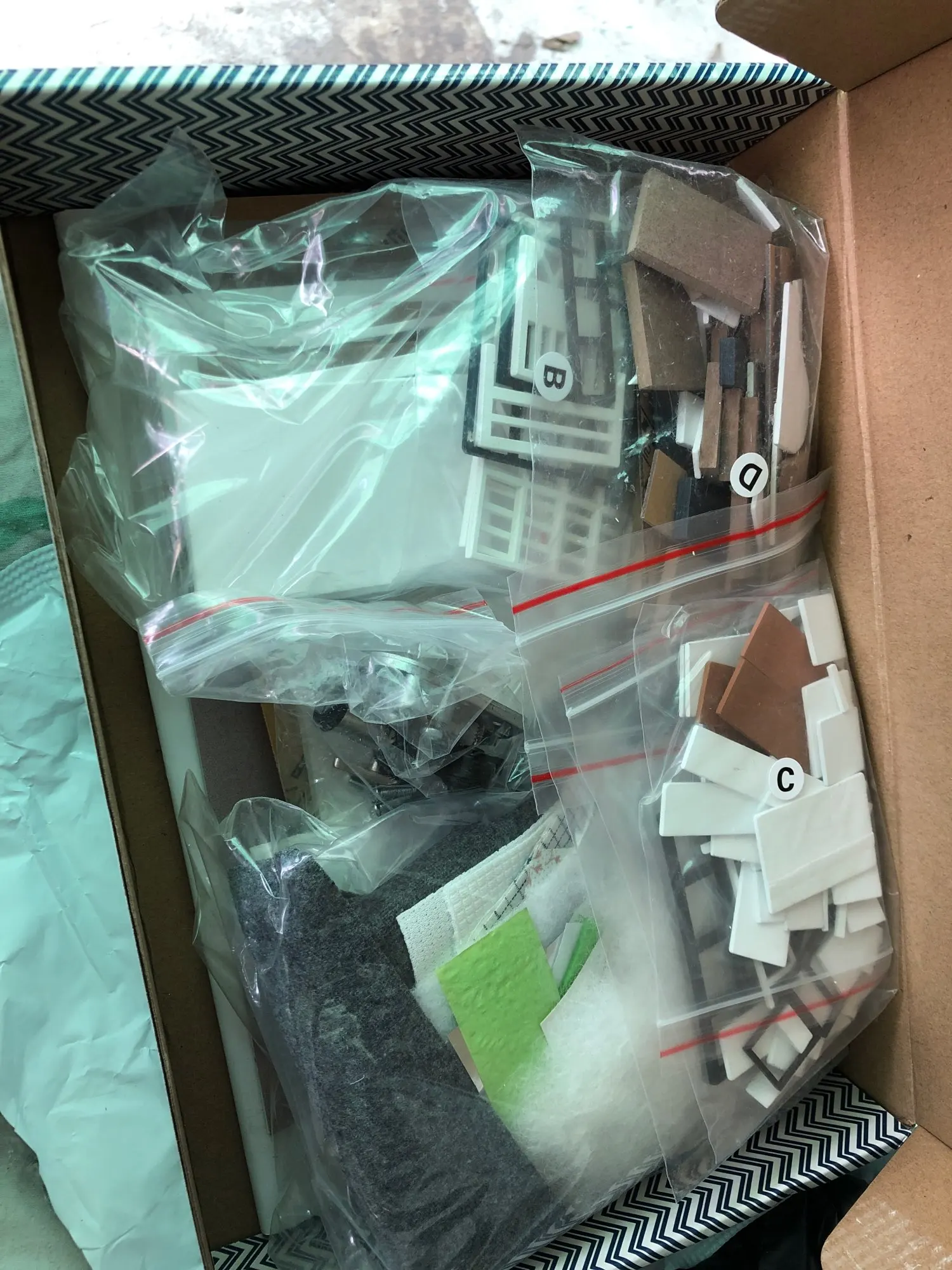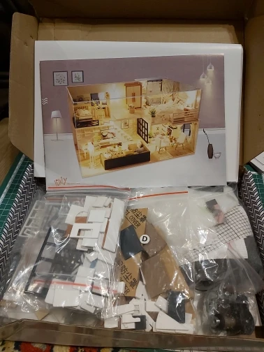 Пришло быстро. Оценку снизил из-за брака и некомплекта в наборе (поломаны тонкие детали окон, искривлены стены, отсутствуют некоторые мелкие детали интерьера). Клей пришлось покупать отдельно.