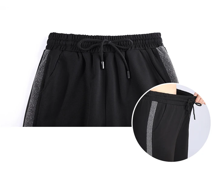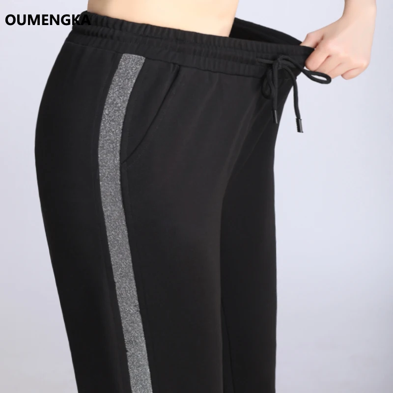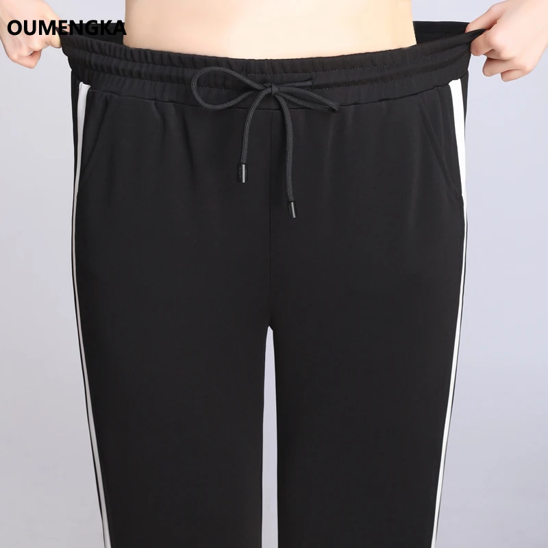 Брюки спортивные женские OUMENGKA, черные, эластичные, с полосками сбоку