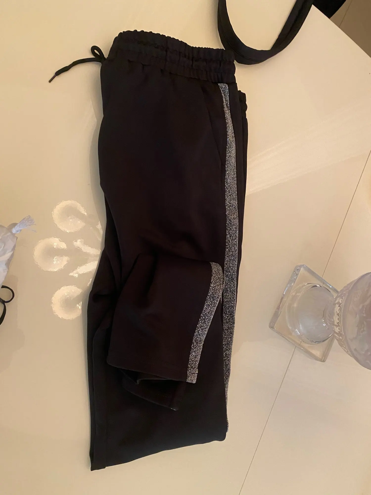 Великолепное, действительно хорошее качество! Как и спортивный костюм Адидас или Найк, качественный, но плотный! Блестящий материал и Блестящая Серебристая полоска-блестящая! Обычно я-Великобритания 10 маленьких и заказывал XL, и они идеально подходят по размеру. Не слишком Мешковатые и не слишком плотные. Хотя мой целлюлит показывает бросок материала. Но отличное соотношение цены и качества!