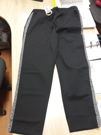 Брюки хорошие, пошив фабричный, все нормально отстрочено.ткань синтетическая.Я промахнулась , с размером,на 50-52 взяла 2xl,оказались сильно велики.