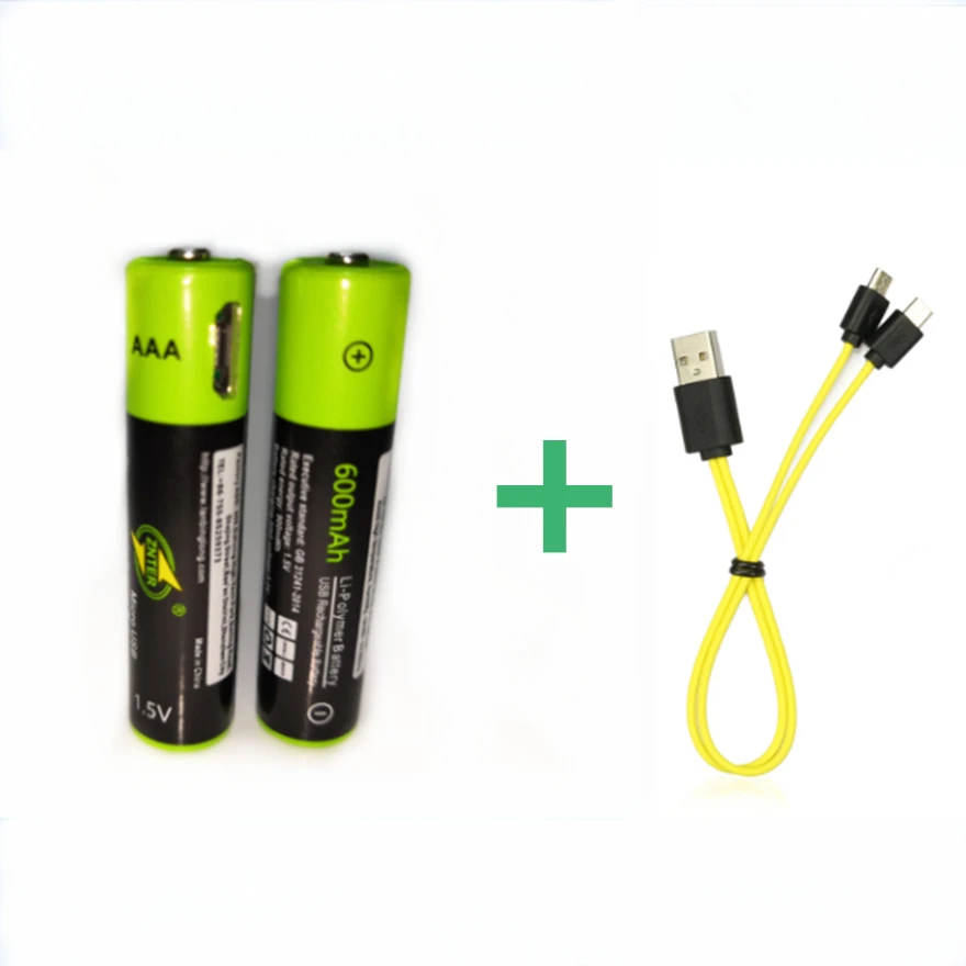 Горячая Распродажа 2PCS ZNTER USB 1,5 V AAA перезаряжаемая батарея 600mAh USB перезаряжаемая литий-полимерная батарея + 1PCS Micro USB кабель