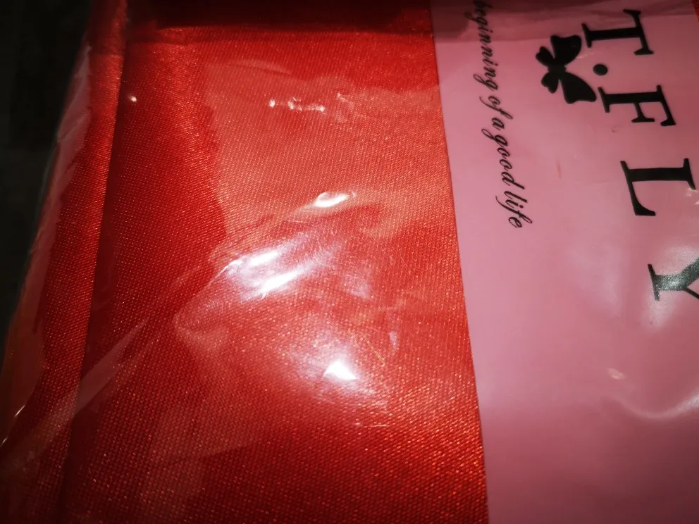 Прекрасная скатерть за эти деньги. Блестит как атлас. Обработка краёв поверху, но я сразу планировала, что пришью тесьму по краям. Потому я очень довольна