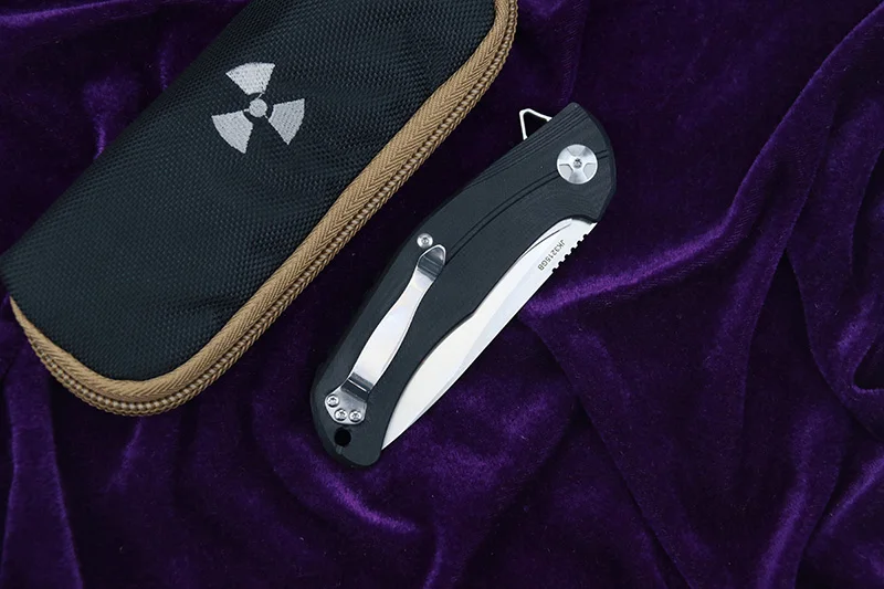 Хороший классический нож. В руке лежит удобно, флиппер работает мягко, заводская заточка добротная. Размер рукоятки приличный, в руке не утонет. В комплекте чехол на молнии для ношения на ремне - выглядит качественно, но не особо удобен. Лично я бы предпочел, чтобы все заплаченные деньги пошли в качество ножа. Ещё в комплекте есть салфетка для протирки - всё-таки сталь d2 не любит грязи и влаги. Запчастей нет. Отправка заказа быстрая.