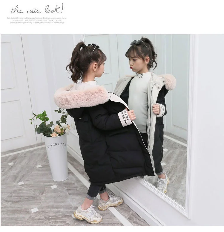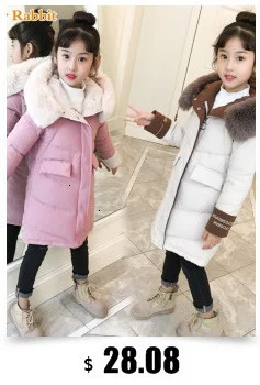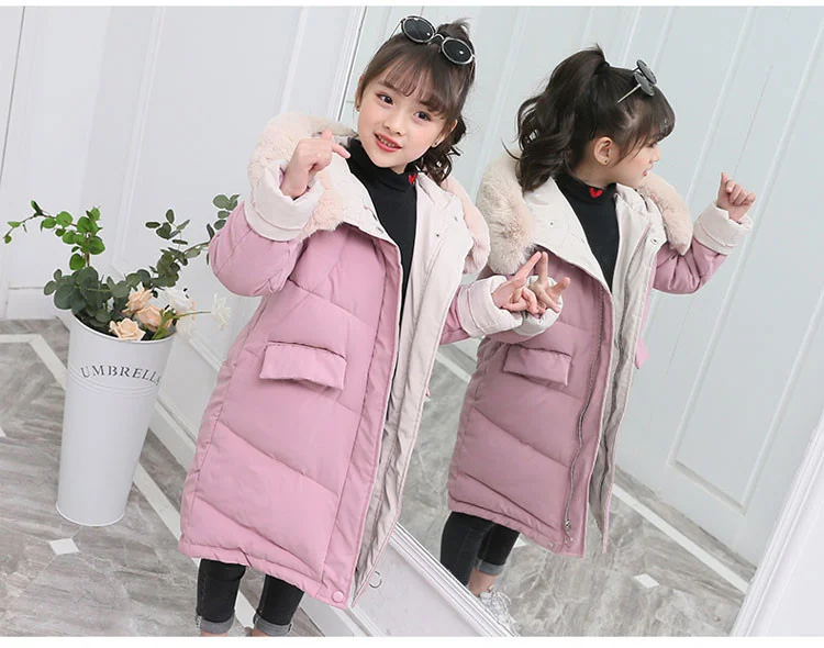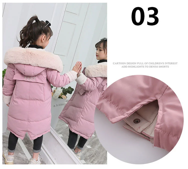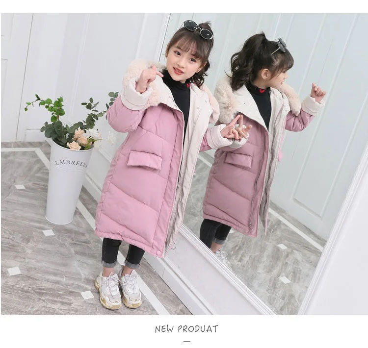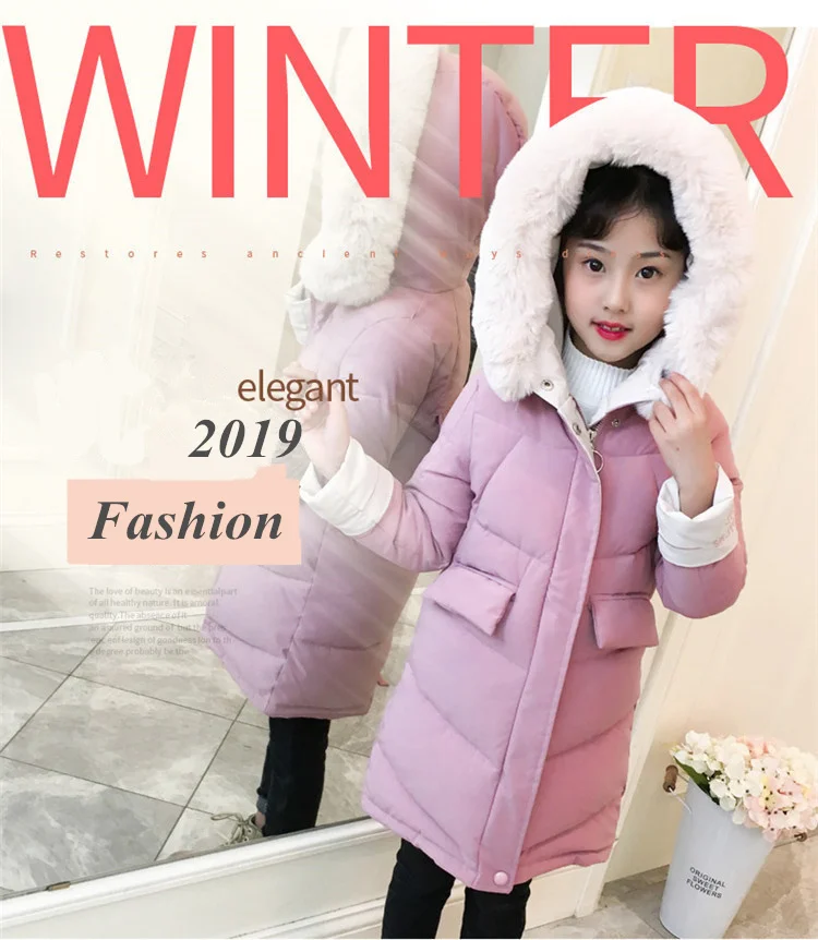 Детская пуховая куртка на девочку, зимняя теплая плотная парка с меховым воротником, длинное пальто с капюшоном, 2021, От 3 до 14 лет