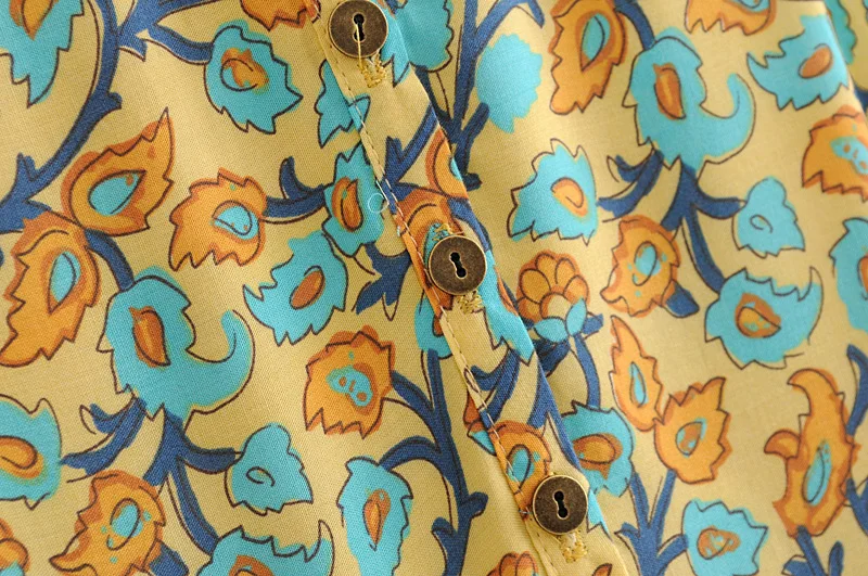Женское винтажное платье с цветочным принтом, желтое однобортное бо...