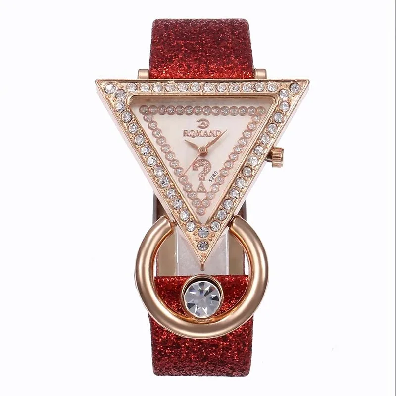 Топ Бренд Высокое качество модные женские простые часы кожа треугольник алмаз Аналоговые кварцевые наручные часы saat подарок