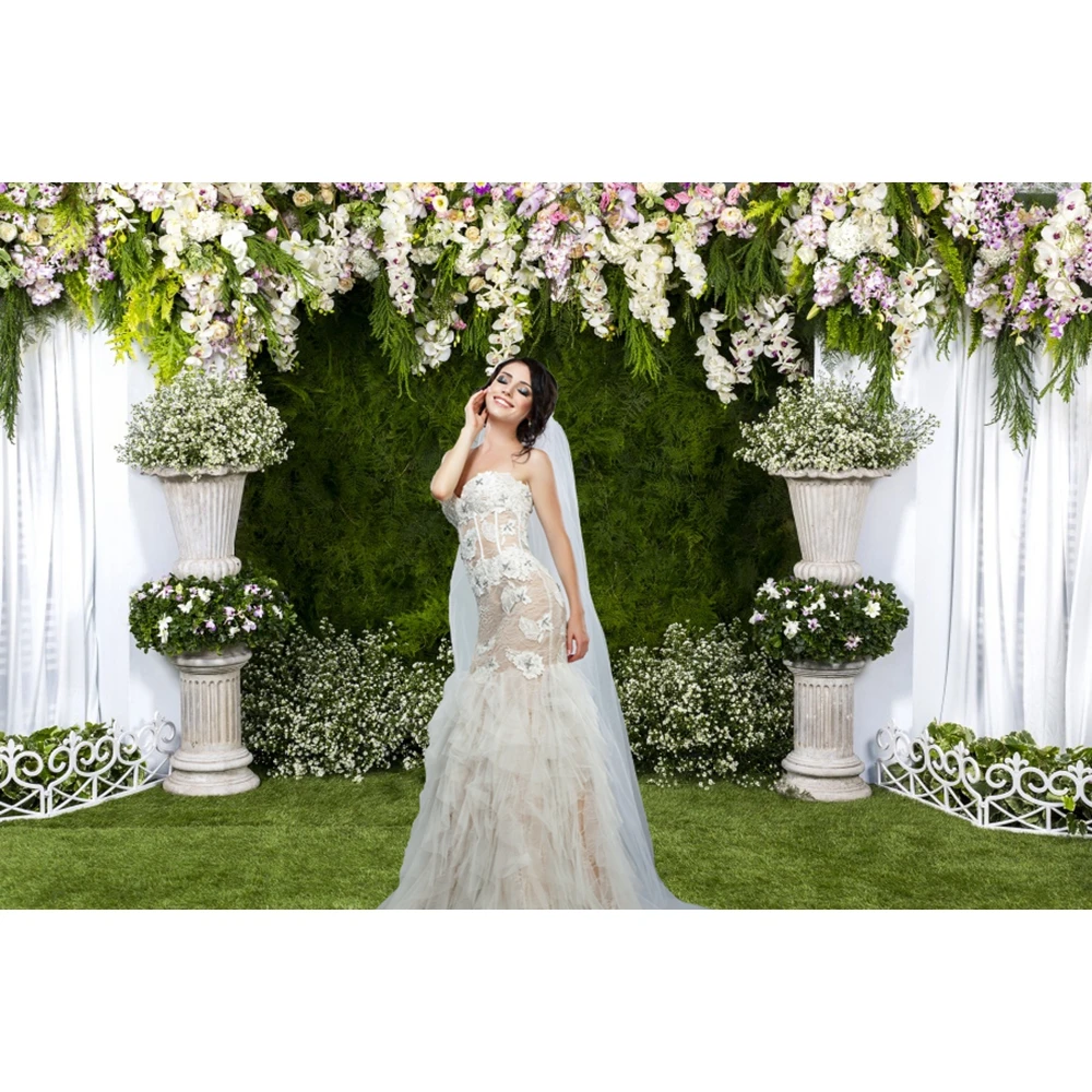 Свадебная белая занавеска Цветущая Цветочная Гирлянда настенная фотография для фотостудии