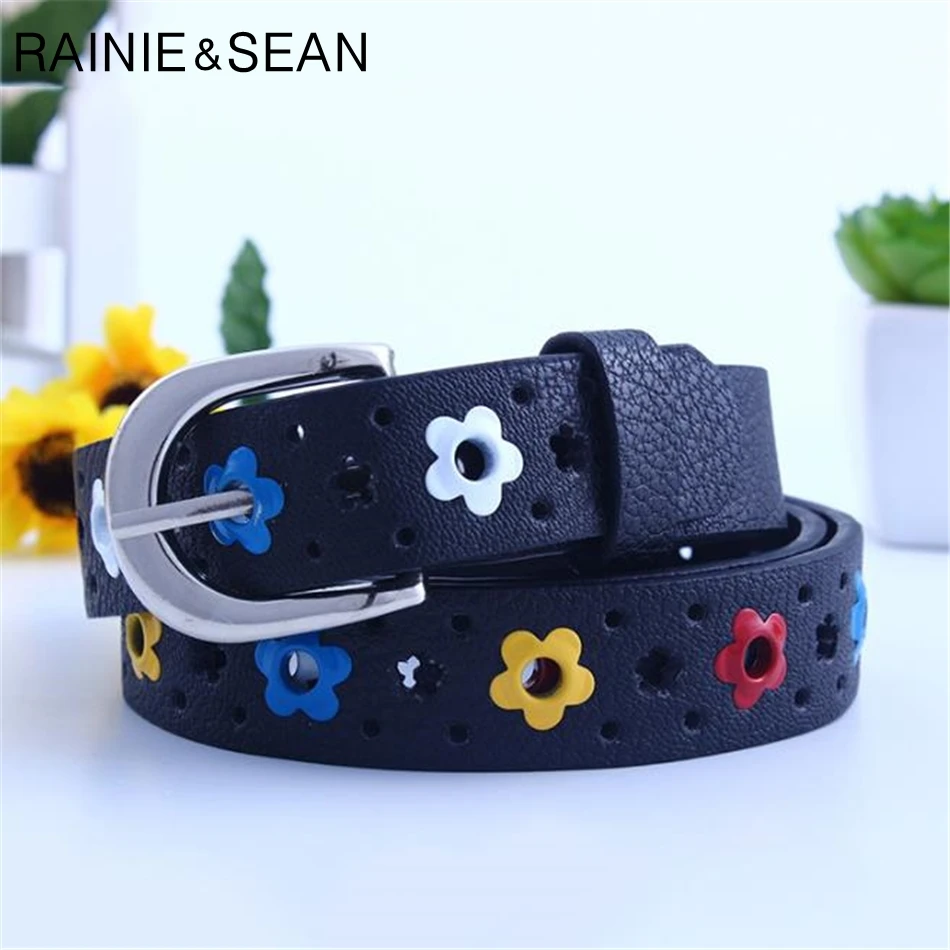 Детский ремень RAINIE SEAN, с цветочным рисунком, с вырезами, с пряжкой со штырьком, Модный повседневный детский кожаный ремень 96 см