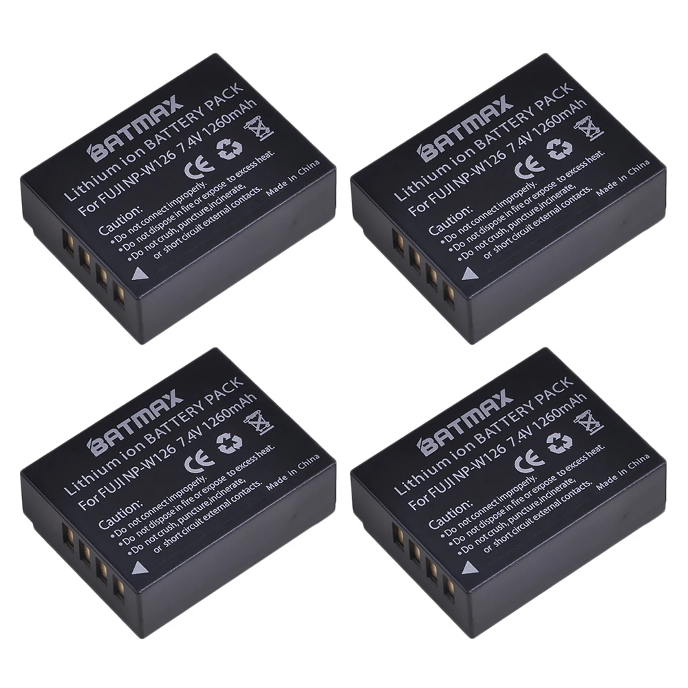 Batmax 4 шт. NP-W126 NPW126 батарея akku для Fujifilm FinePix HS30EXR HS33EXR X-Pro1 X-E1 X-E2 X-M1 X-A1 X-A2 X-T1 X-T10 X-T20