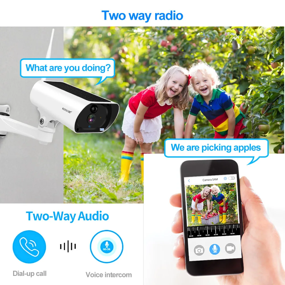 Солнечная энергия/4X Zoom/2-канальное аудио/IP66 водонепроницаемый/Wifi беспроводной охранный видеонаблюдение