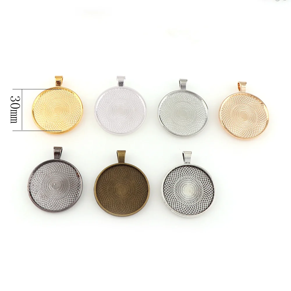 Круглые выпуклые круглые ювелирные изделия из сплава с одним отверстием, 7 цветов, 5 шт., размер 30 мм, внутренний размер, в простом стиле