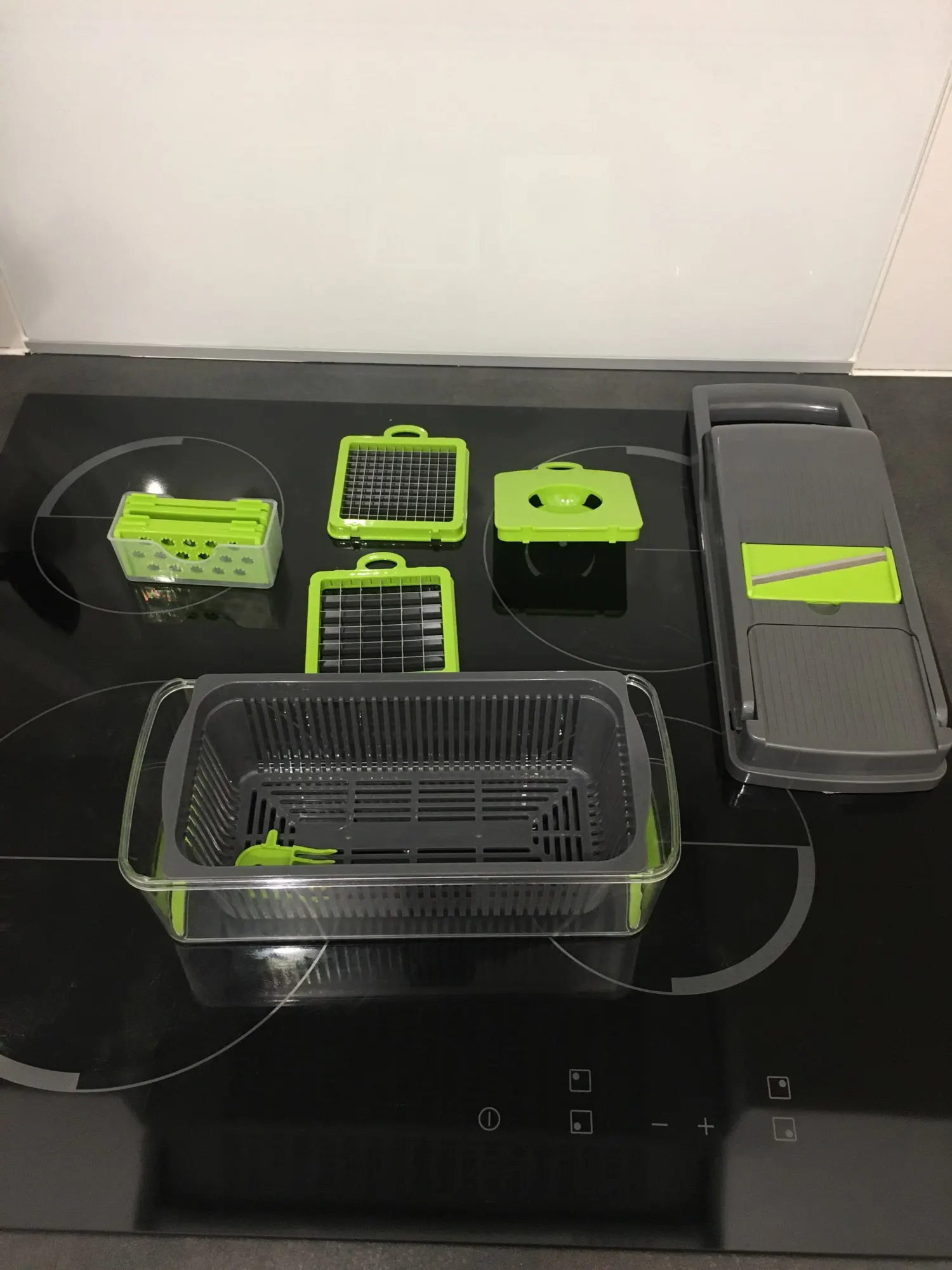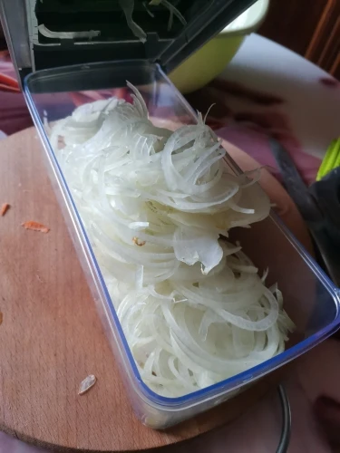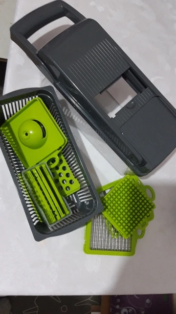 Заказывал такой уже второй. Теперь сестре. Очень нравится. Пластик крепкий. Лезвия очень острые! Молодую сырую картошку режет, но нужно приложить усилия. Салаты стало делать на много быстрее Спасибо продавцу!
