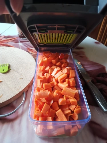 Здорово справляется с нарезкой картофеля для фри. Хороший пластик, БЕЗ запаха! Единственное, хотелось бы чашу поглубже немного, чтобы помещались ломтики вертикально. Острые ножи на всех сменных элементах. держатель на удивление функционален, овощи не вылетают, как правило.