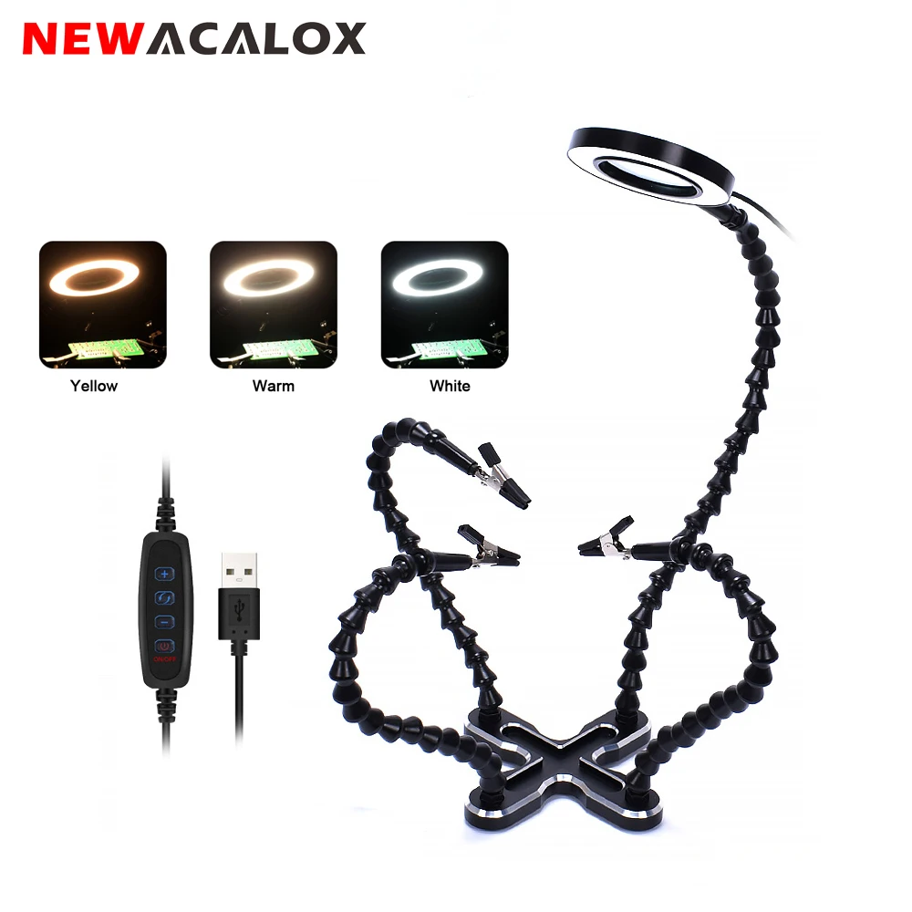 Подставка для паяльника NEWACALOX, USB 3X лупа с подсветкой, ручной инструмент для сварки и ремонта, многофункциональная паяльная станция