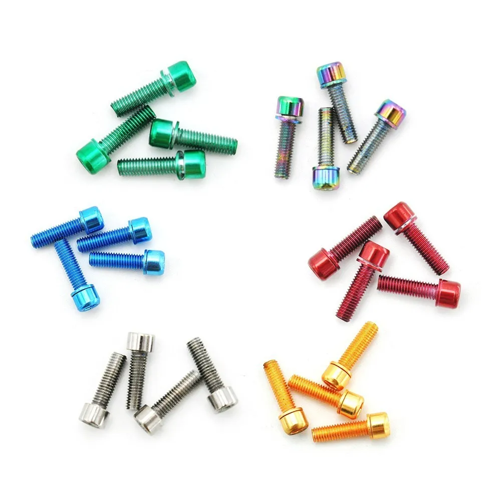 Стальные Конические Винты Болты с шайбой M5 * 18 мм для велосипедных стеблей и руля 4 шт/упаковка титана покрытый вертикальный винт