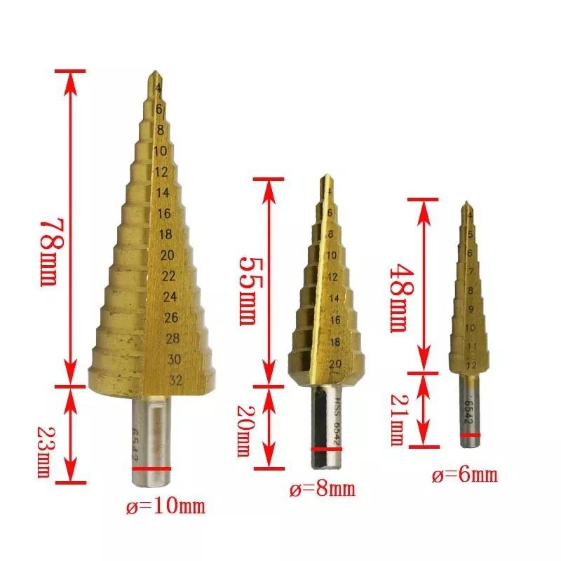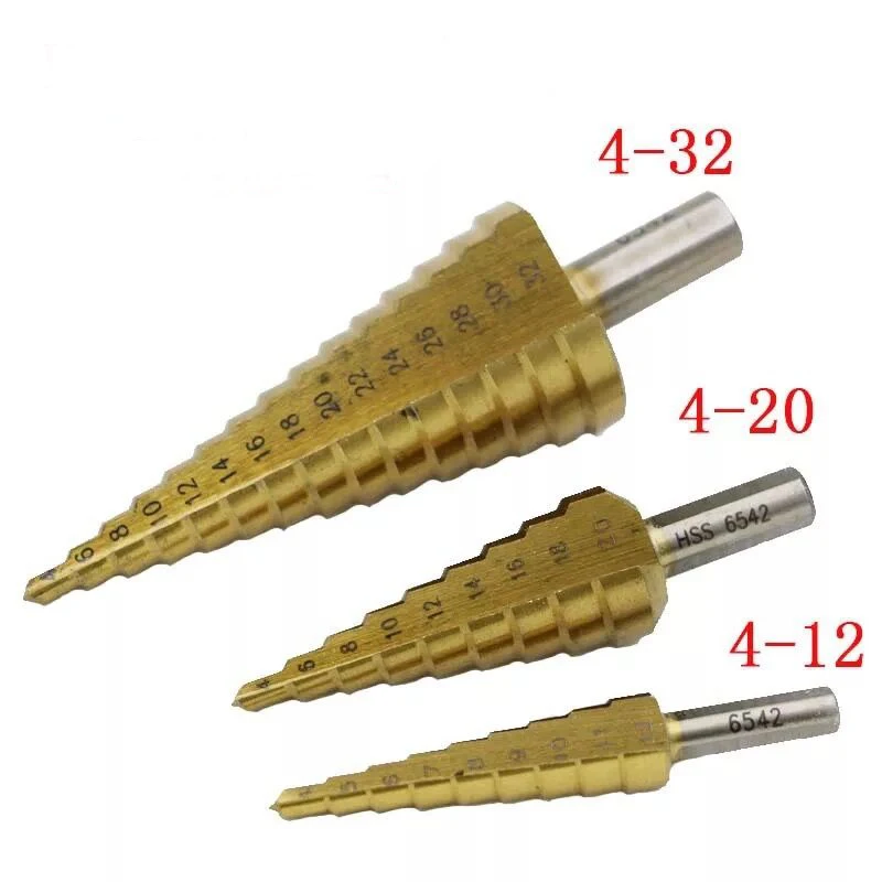 1 шт. HSS конус шаг сверла набор сверл 4-12 мм4-20 мм4-32 мм с титановым покрытием деревообрабатывающее отверстие Фрезерный резак