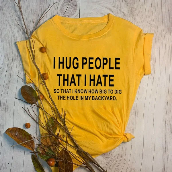Женская футболка с надписью I hug people i hate, минимализм, сарказм, гранж, эстетика