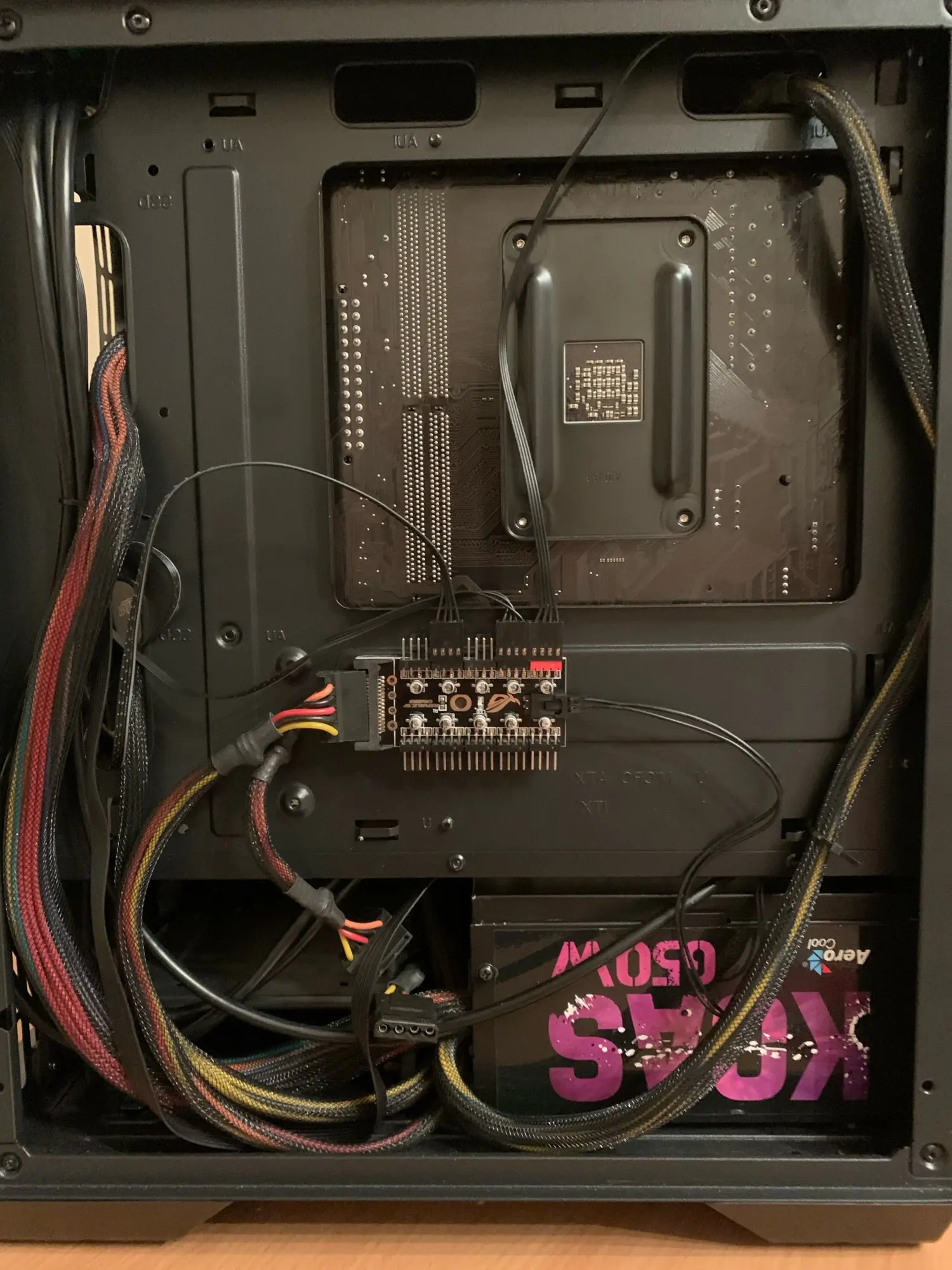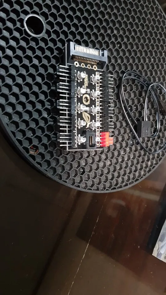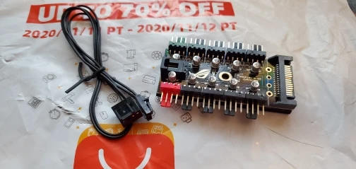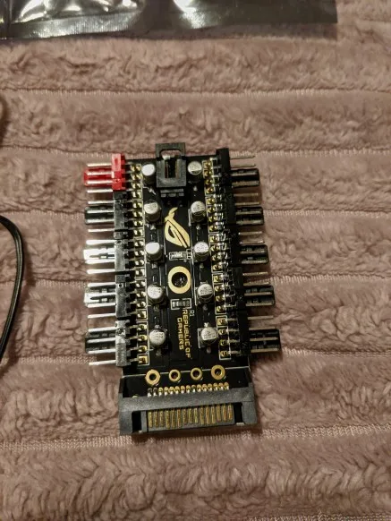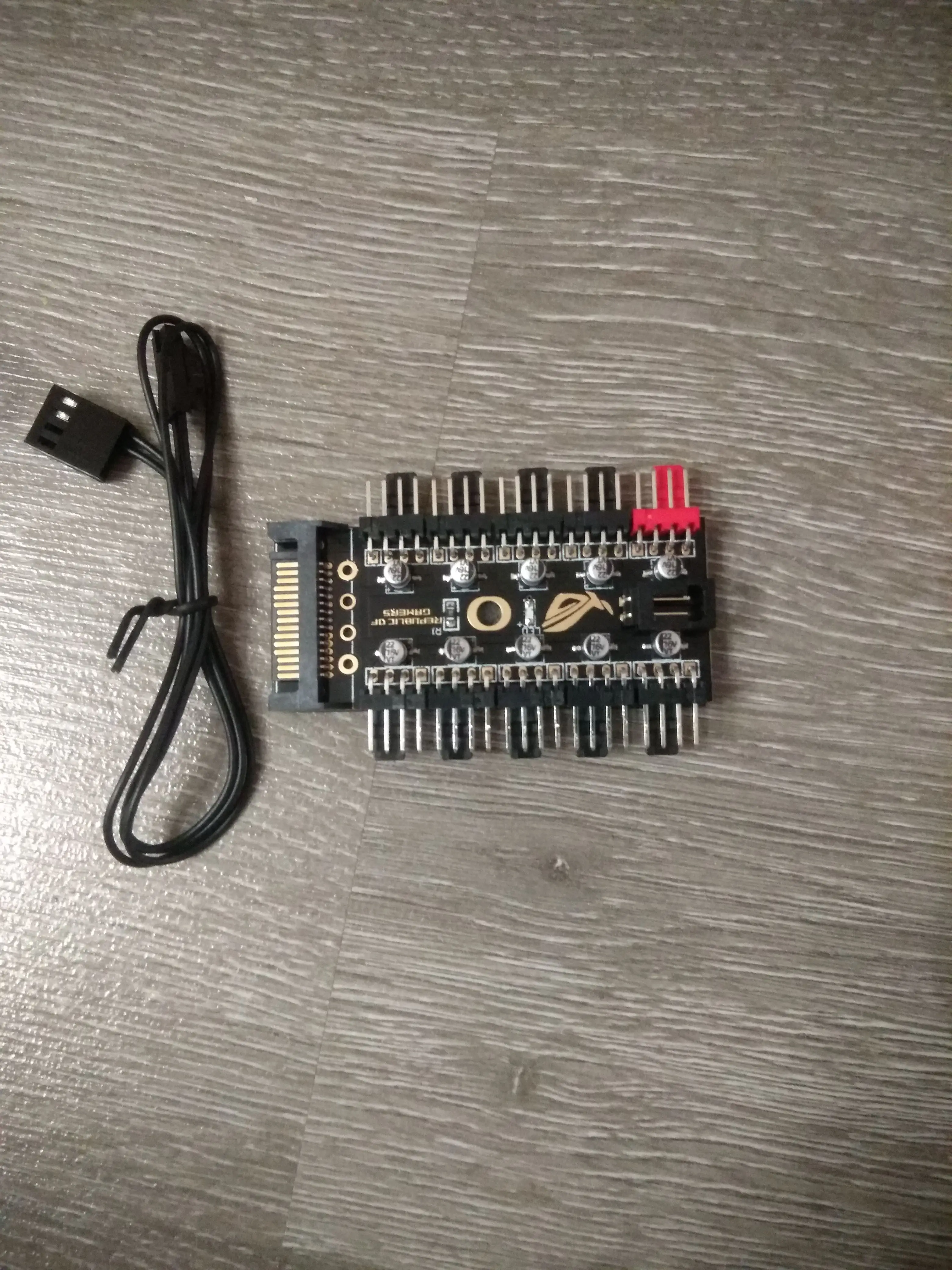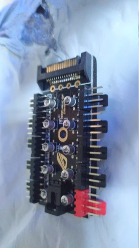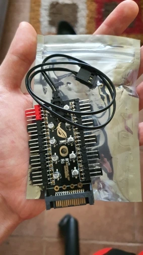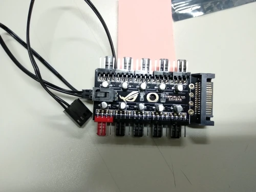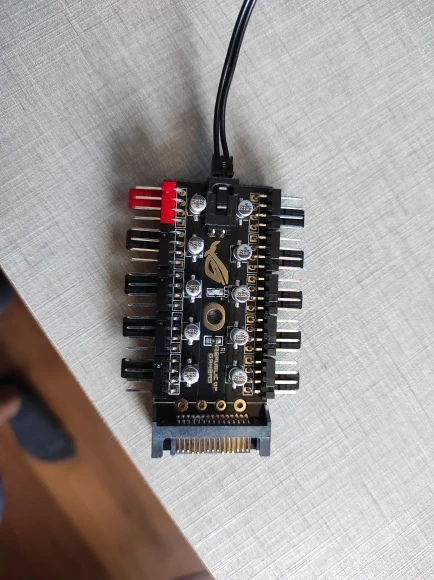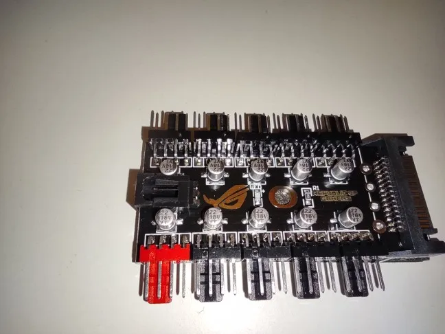 Неплохой контроллер вентиляторов для корпуса или открытого стенда с возможностью подключения до 10 штук с синхронизацией от одного разъема. Возможность подключения как 3-pin, так и 4-pin вертушек. Логотип R.O.G. - внезапно.