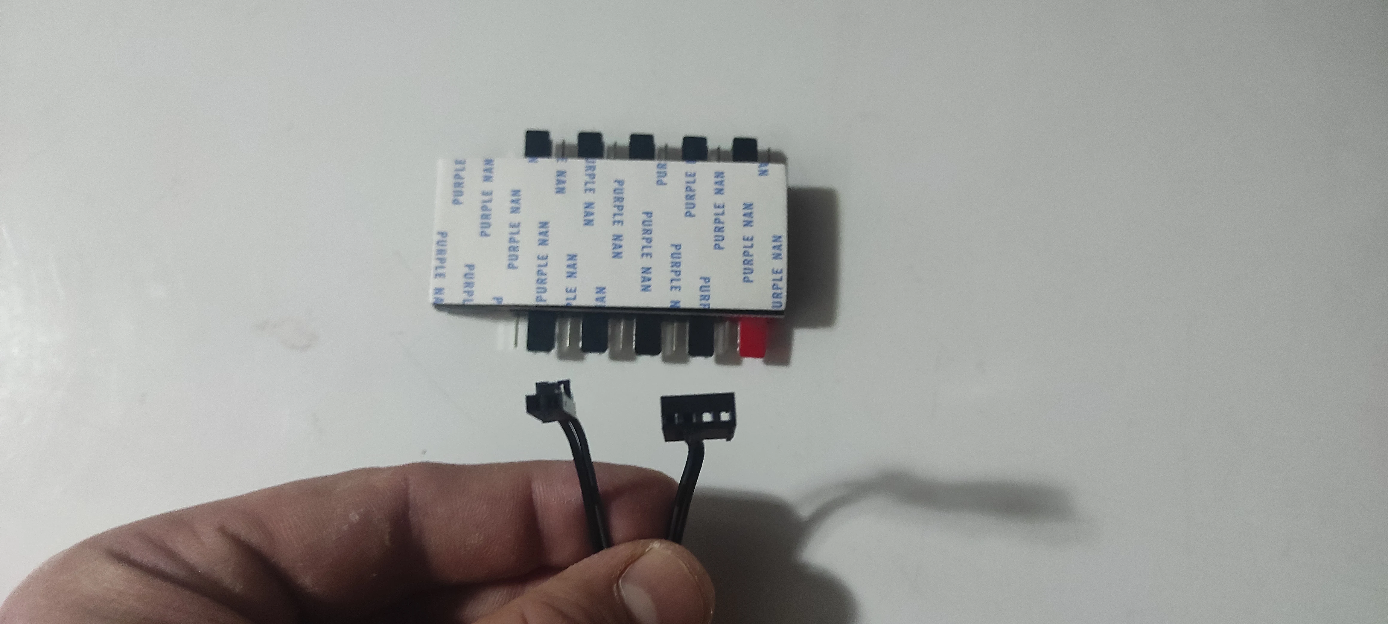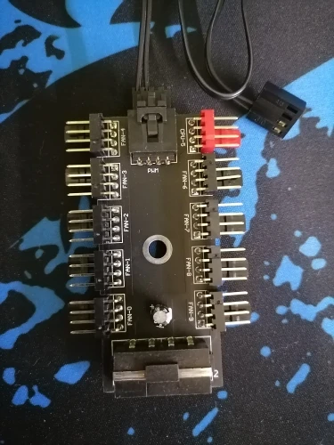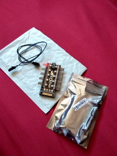 Получил хаб, упакован в отдельный антистатичный пакет, и обычный пакет, в комплекте идёт кабель для мат.платы, двухсторонний скотч имеется с обратной стороны, горит синий светодиод, проверил на двух кулерах, все работает, красный разъём основной, с него считываються обороты с материнской платы, остальные сделаны последовательно, вообщем регулировка работает через систему, проверял через утилиту от Asus, буду сажать на него 4-5 Вентиляторов от Pccooler, а так все работает нормально, спасибо продавцу.