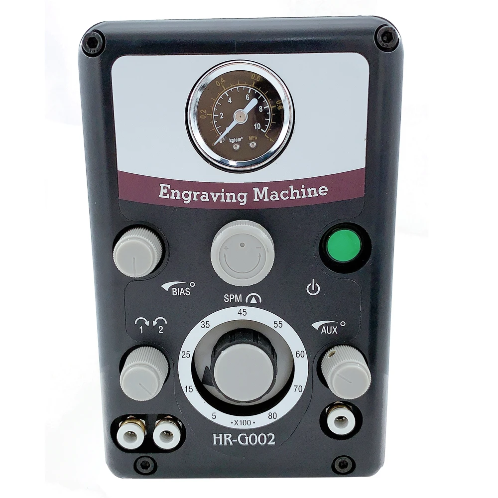 Гравировальная машина HH-G01 имеет 0-8000 штрихов в минуту, клапан регулировки смещения дроссельной заслонки для пошива отклика дроссельной заслонки и двухступенчатый точный воздушный регулятор. Усовершенствованная Эргономика включает в себя регулировку переднего давления воздуха, быстрое подключение воздушных соединений, заднее крепление дроссельной заслонки и Усовершенствованный Импульсный блок клапана, который работает практически без шума или вибрации.