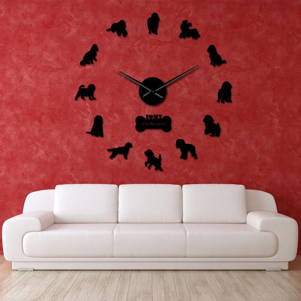 Cockapoo DIY большие настенные часы кокер собака спаниеля порода Бескаркасный конструктор сделай сам гигантские настенные часы Бесшумный ход часы Пудель влюбленных подарок