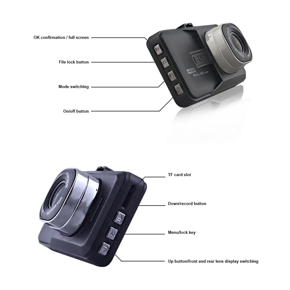 Full HD 1080P 3 дюйма Видеорегистраторы для автомобилей Камера av-out, USB2.0, SD/MMC, микро SD/TF на тонкопленочных транзисторах на тонкоплёночных транзисторах Экран с детектором движения Ночное Видение G Сенсор Видеорегистраторы для автомобилей