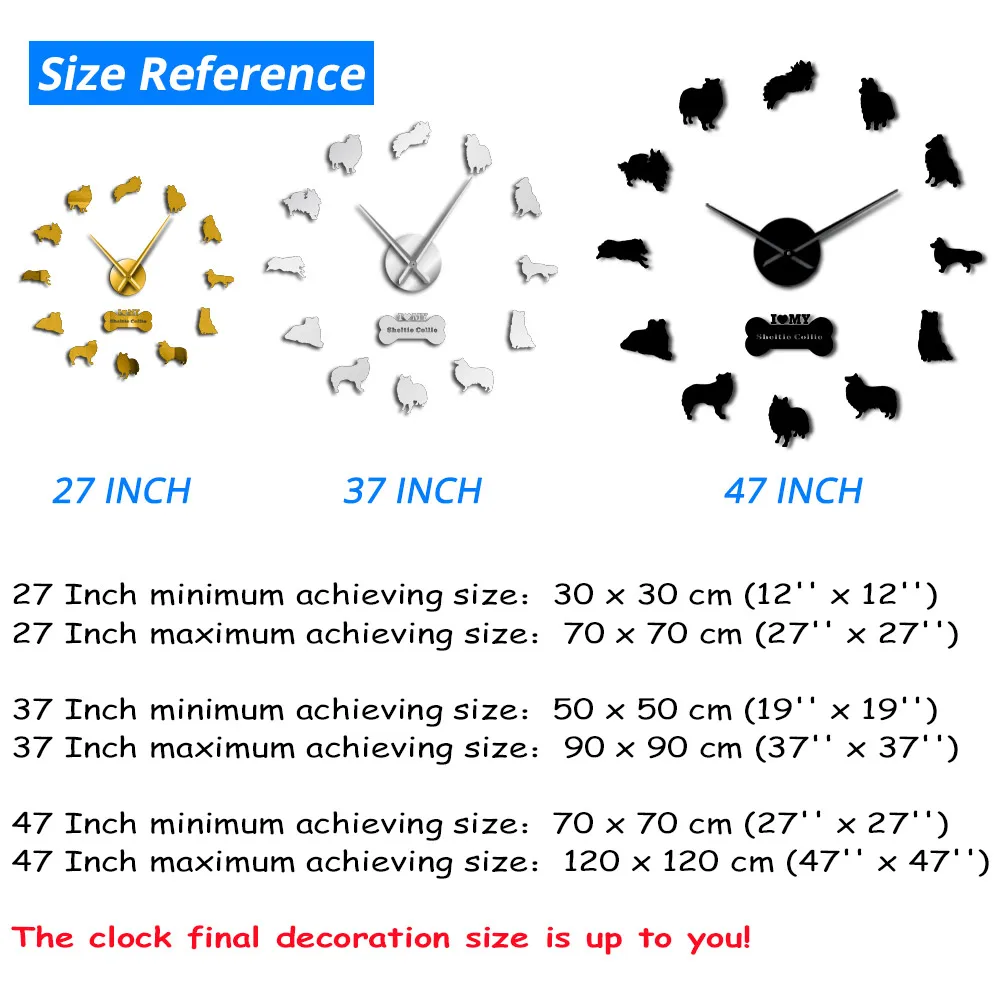 Sheltie собака колли порода Настенный декор ручной работы гигантские настенные часы шелти тихий кварцевый настенные часы шотландская овчарка часы с большим временем