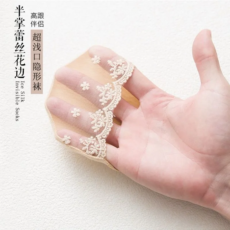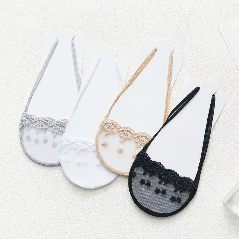 Носки женские кружевные из силикагеля, Нескользящие, 1 пара = 2 шт., ws195, летние, с хлопковой подошвой