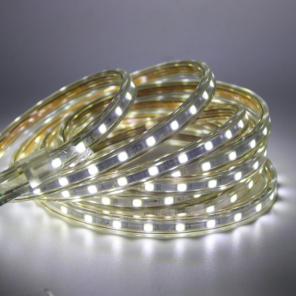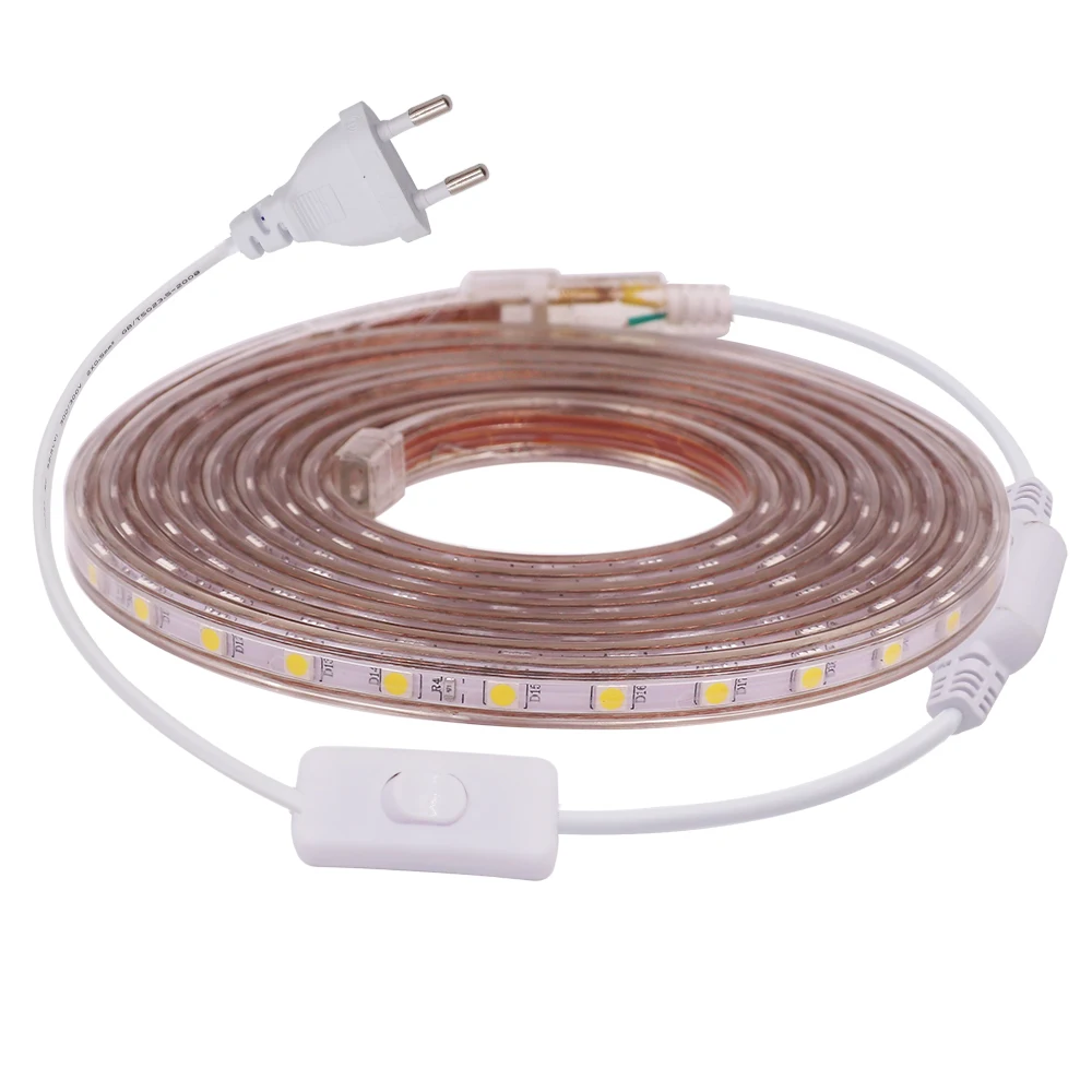 220V 5050 Светодиодная лента Водонепроницаемая наружная отделка 60 светодиодовм гибкая лента Светодиодная лента + штекер переключателя