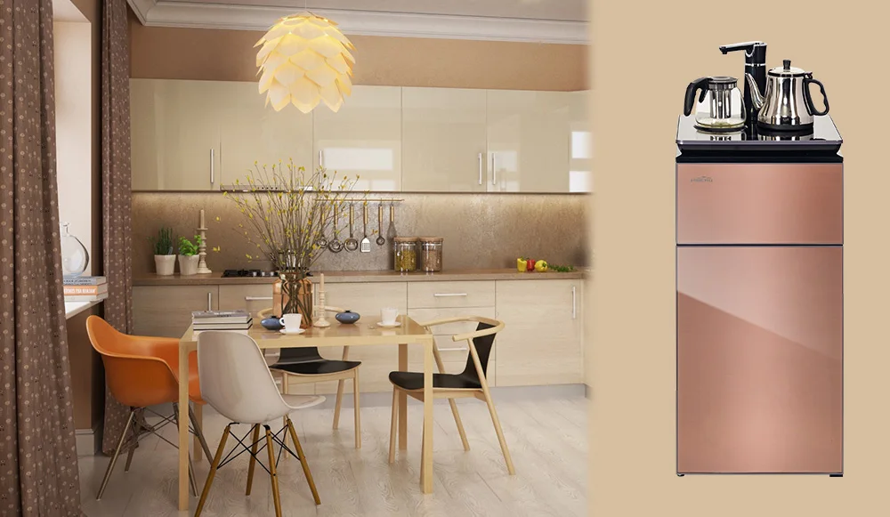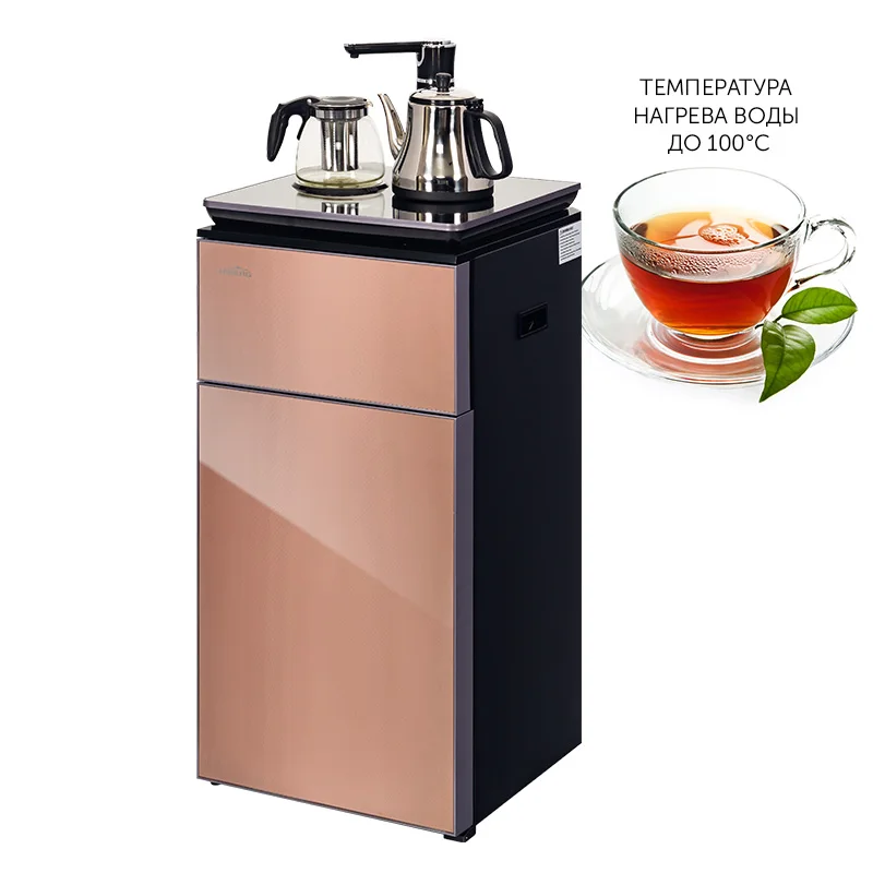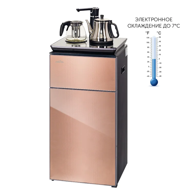 Кулер диспенсер для воды HIBERG F-91FGP с нижней загрузкой бутыли и сервировочной поверхностью, с электронным охлаждением, стеклянный заварочный чайник