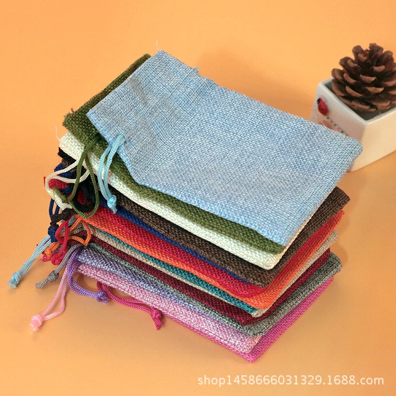 Рождественские льняные джутовые мешочки на шнурке, 7 Х9 см, 10 шт.