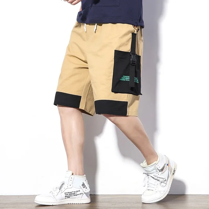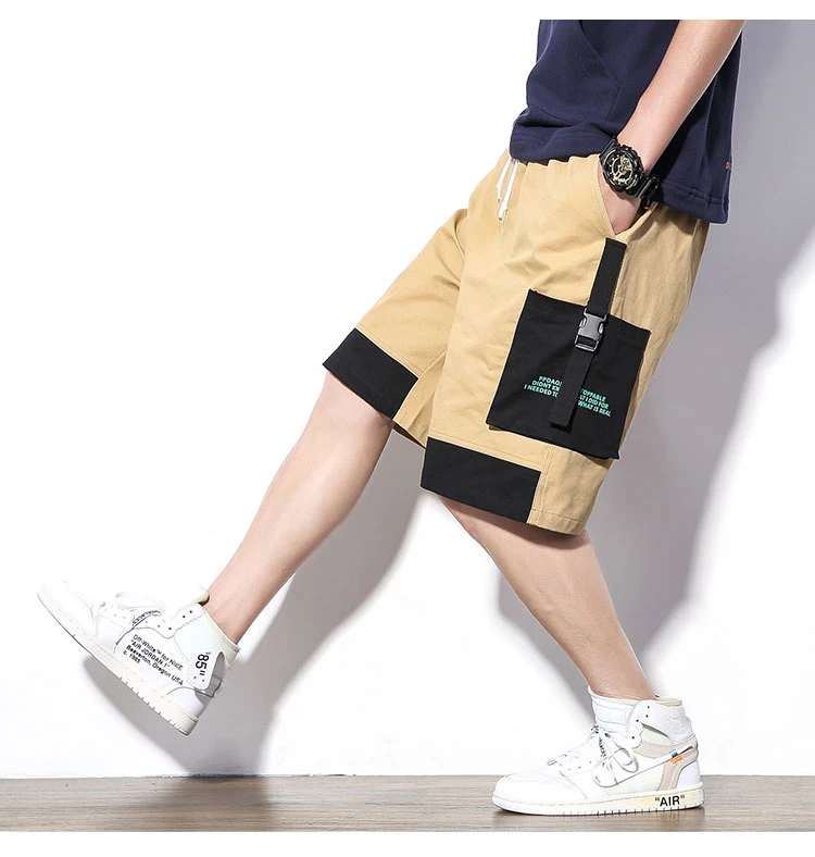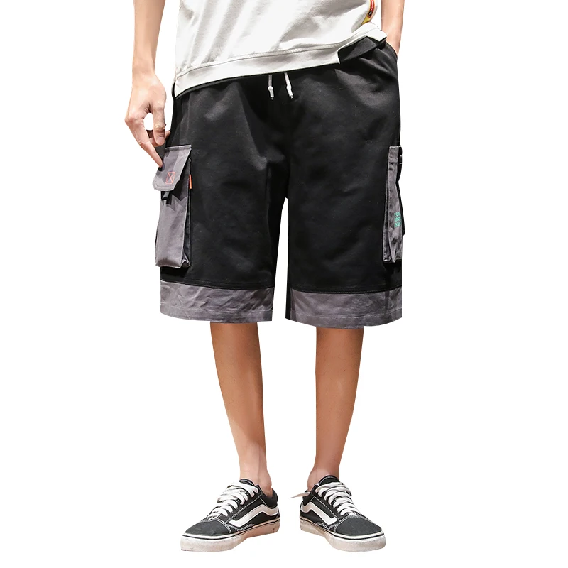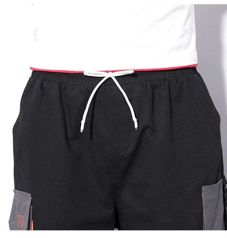 Мужские шорты-карго в стиле хип-хоп, с карманами, для мужчин, Harajuku, короткие, для бега, уличная одежда, тактические, военные, мешковатые, повседневные, с черной лентой, хипстерские шорты