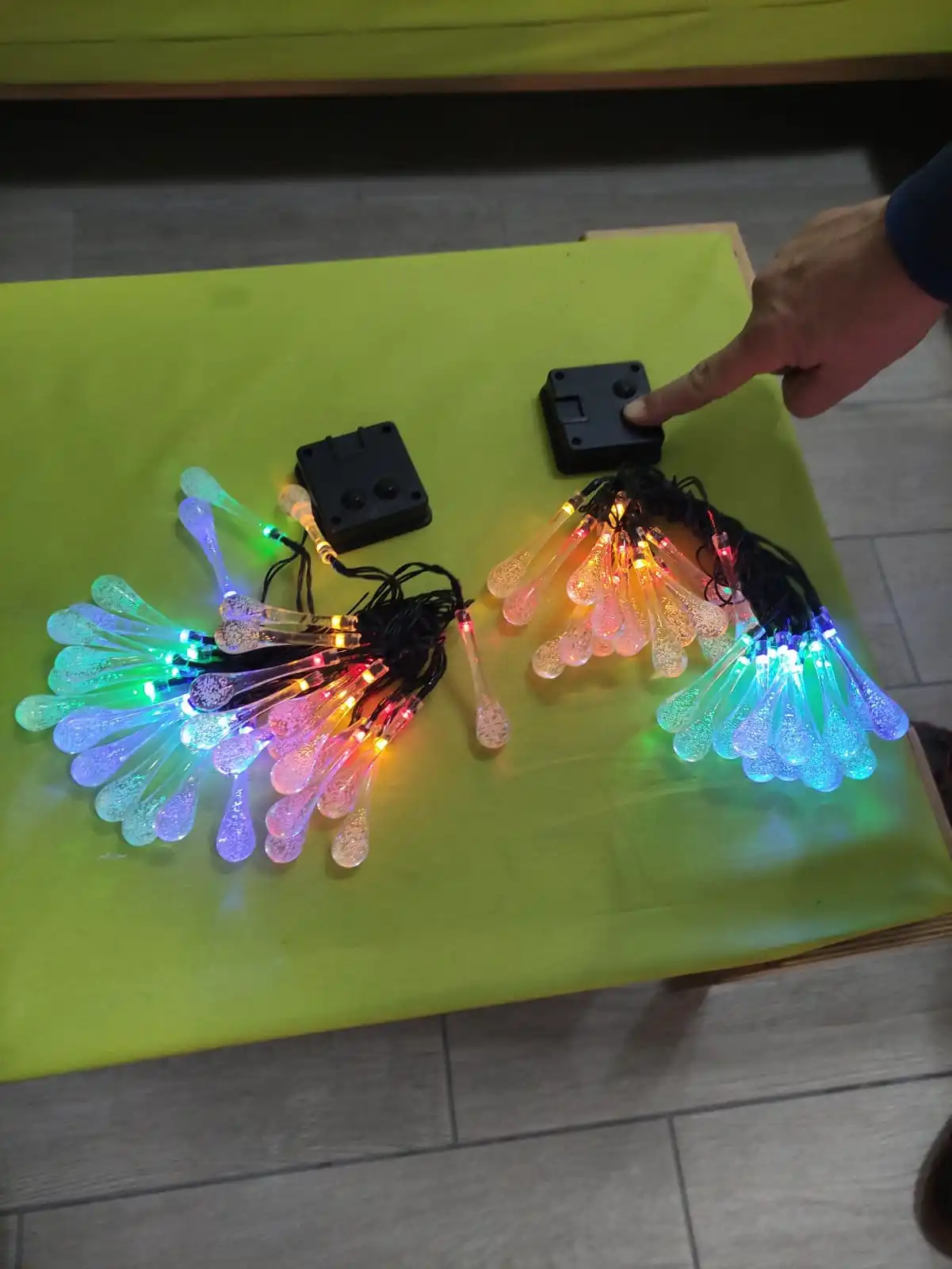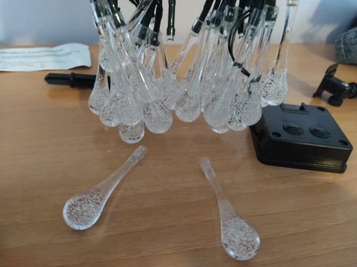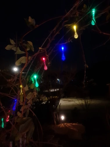 Очень красиво, как видно на фото, они выглядят как стекло, хотя они пластиковые. Они заряжаются на солнце и длятся много часов. Я собираюсь повесить их из моей вишни, чтобы украсить свой сад и осветить его всю ночь.