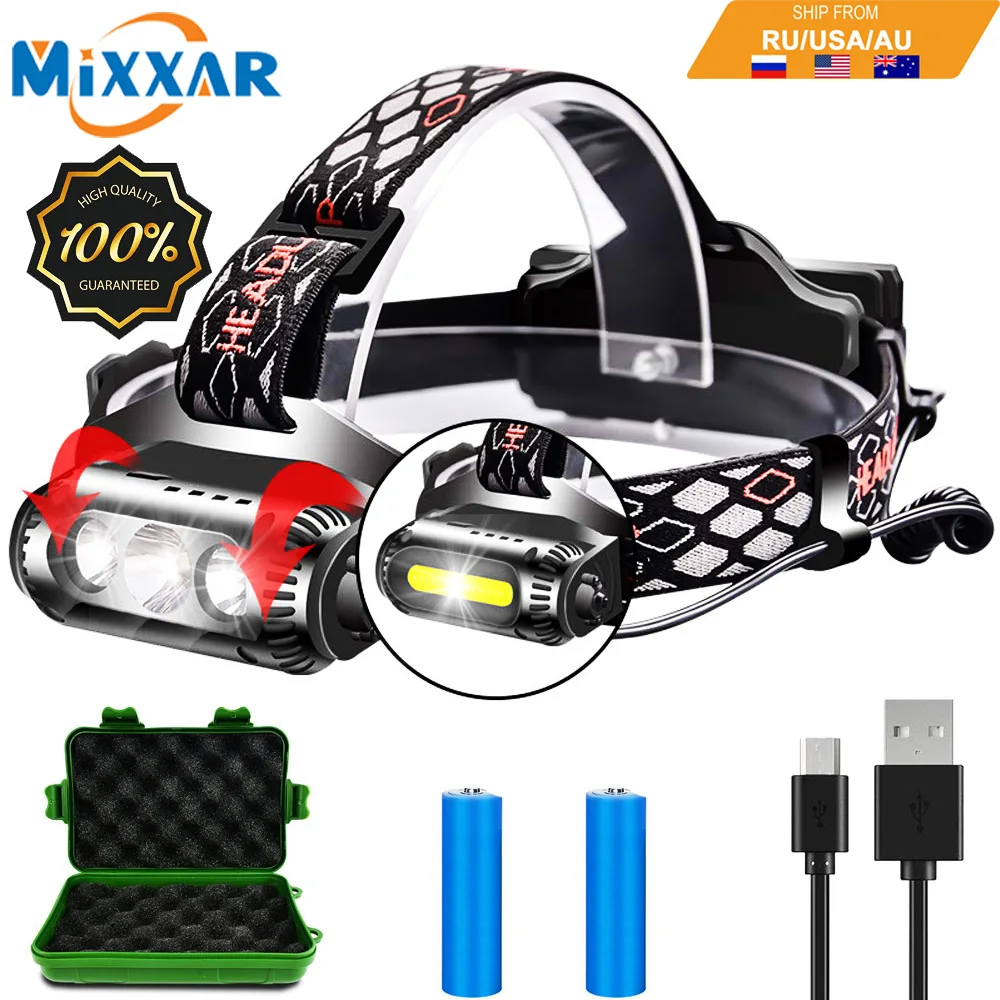 Дропшиппинг T6 XPE светодиодный налобный фонарь 2 стороны Вращающийся 3 светильник 8 режимов Многофункциональный USB COB головной светильник