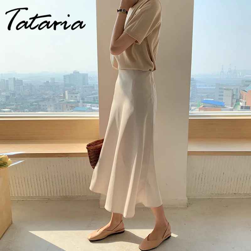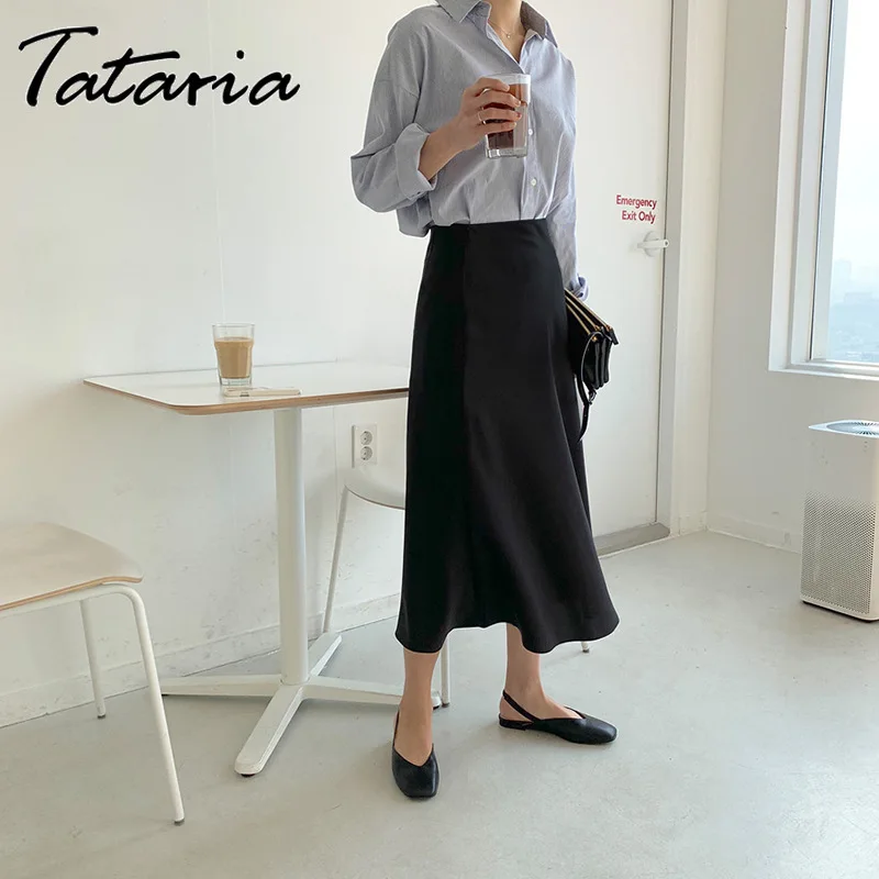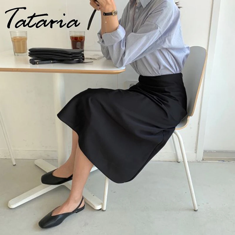 Женская атласная юбка Tataria, летняя повседневная элегантная юбка с высокой талией, трапециевидная юбка средней длины для школьниц, Jupe Femme