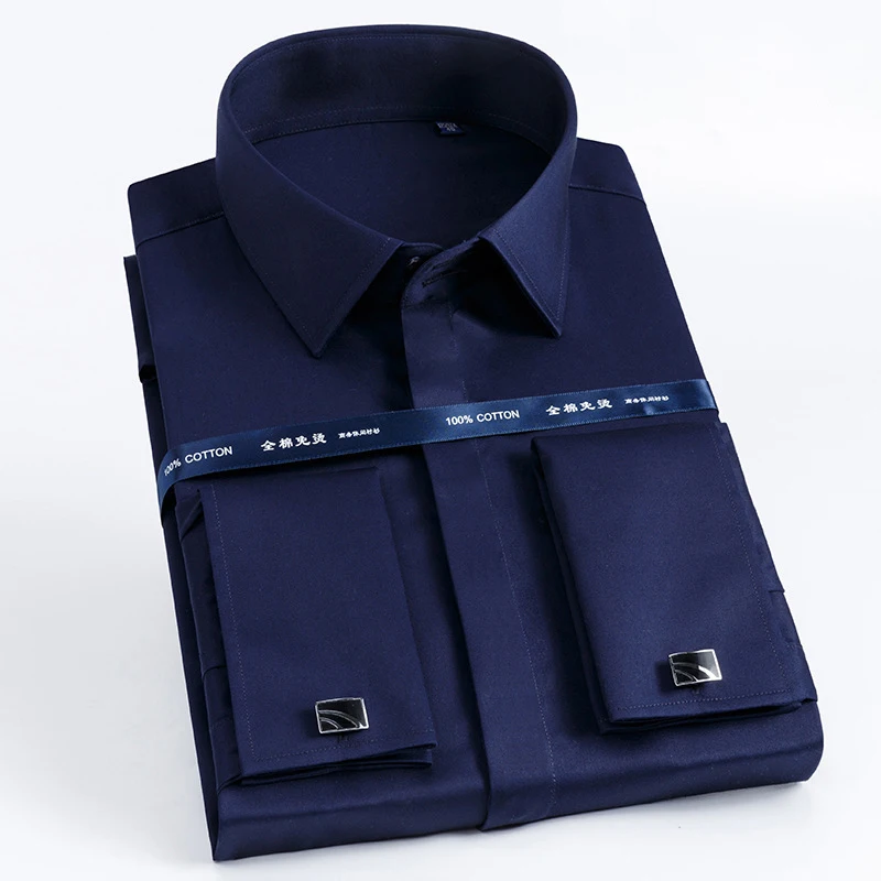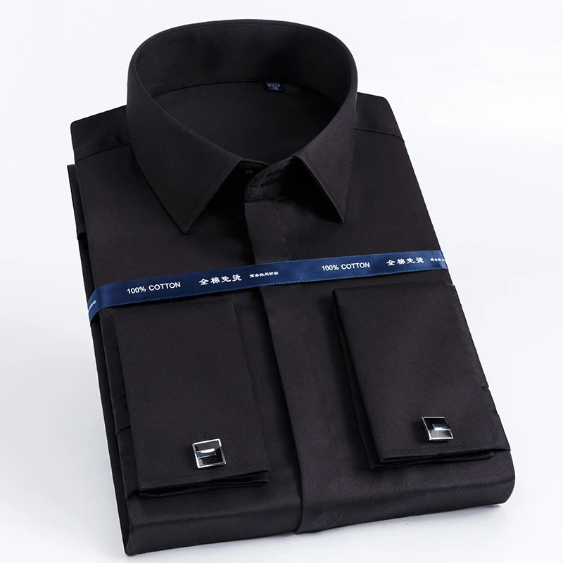 Роскошные мерсеризованные хлопковые рубашки с французскими манжетами и пуговицами, мужская рубашка с длинным рукавом для смокинга, свадебная рубашка, Высококачественная классическая рубашка с запонками
