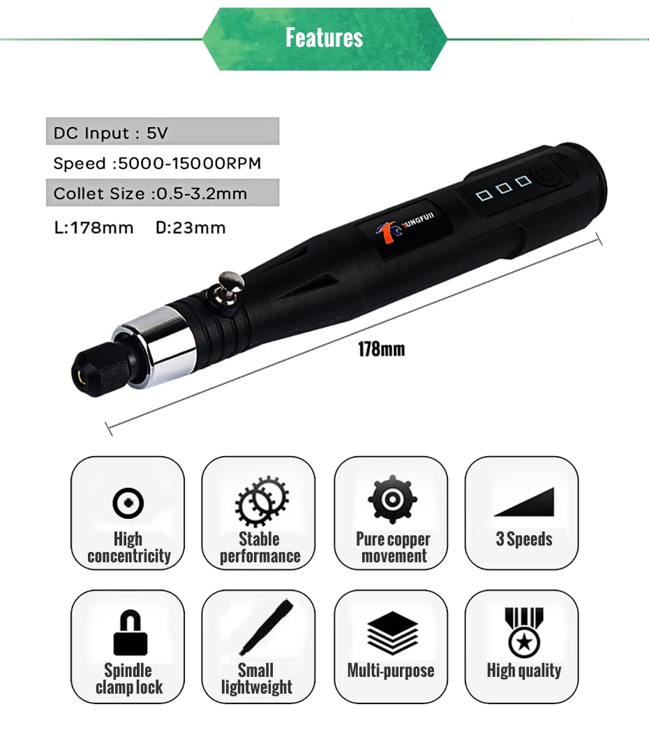 Электрическая мини-дремель для ногтей, 15000 об.мин., с аксессуарами для полировки
