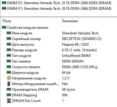 Страна: RU Memory Capacity: 2x8GB 2666 for Intel Доставка: Standard Shipping 23.12.2020
