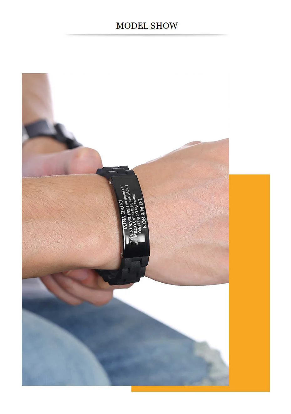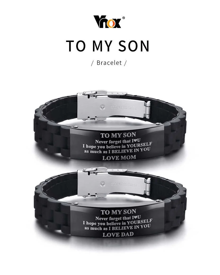 Браслет Vnox для моего сына, смелость-это не отсутствие, браслет с надписью Love Mom, DAD для мужчин, мужской браслет из силикона, спортивный браслет