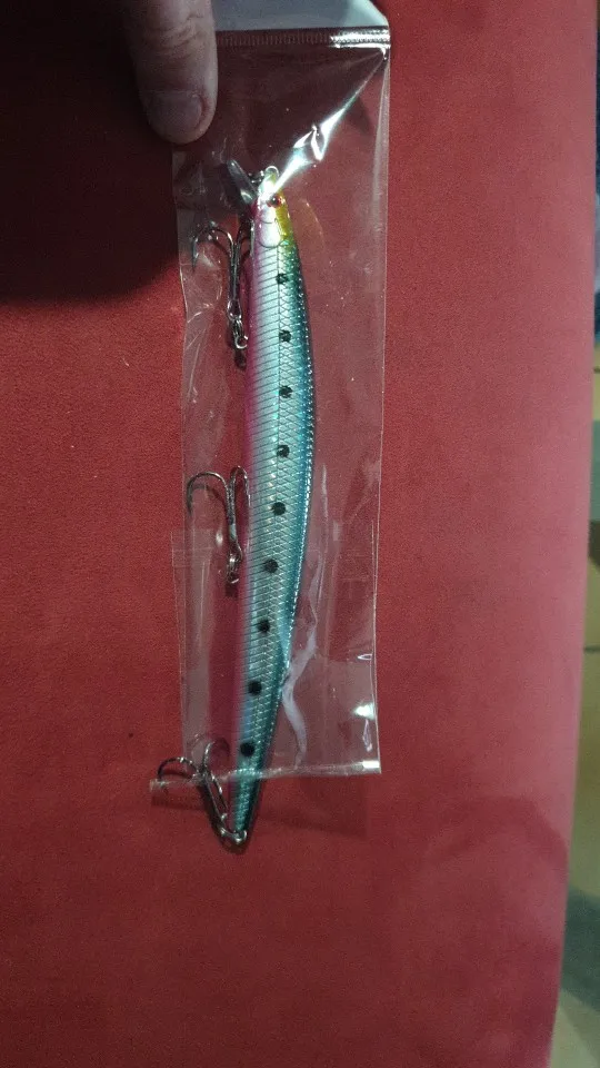 Заказанный 24 августа прибыл 14 сентября, точное отслеживание быстрой доставки. Искусственный плавающий от палтрий цена .. Размер и вес не просто точно: 18 см для 25 гр (с тройными крючками) Тройные Крючки прочные и сплит достойные, запас плавающий проверен. Яркие цвета, хорошо сделанные, качество незаметное для того, чтобы стоить. Акцентирует внимание на деталях и, надеюсь, adescante. Мы будем стараться на рыбалке, надеемся... скоро.