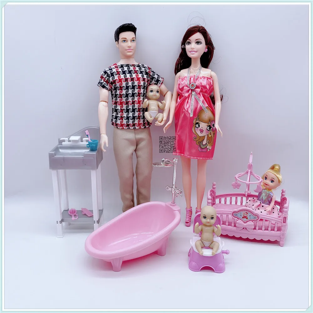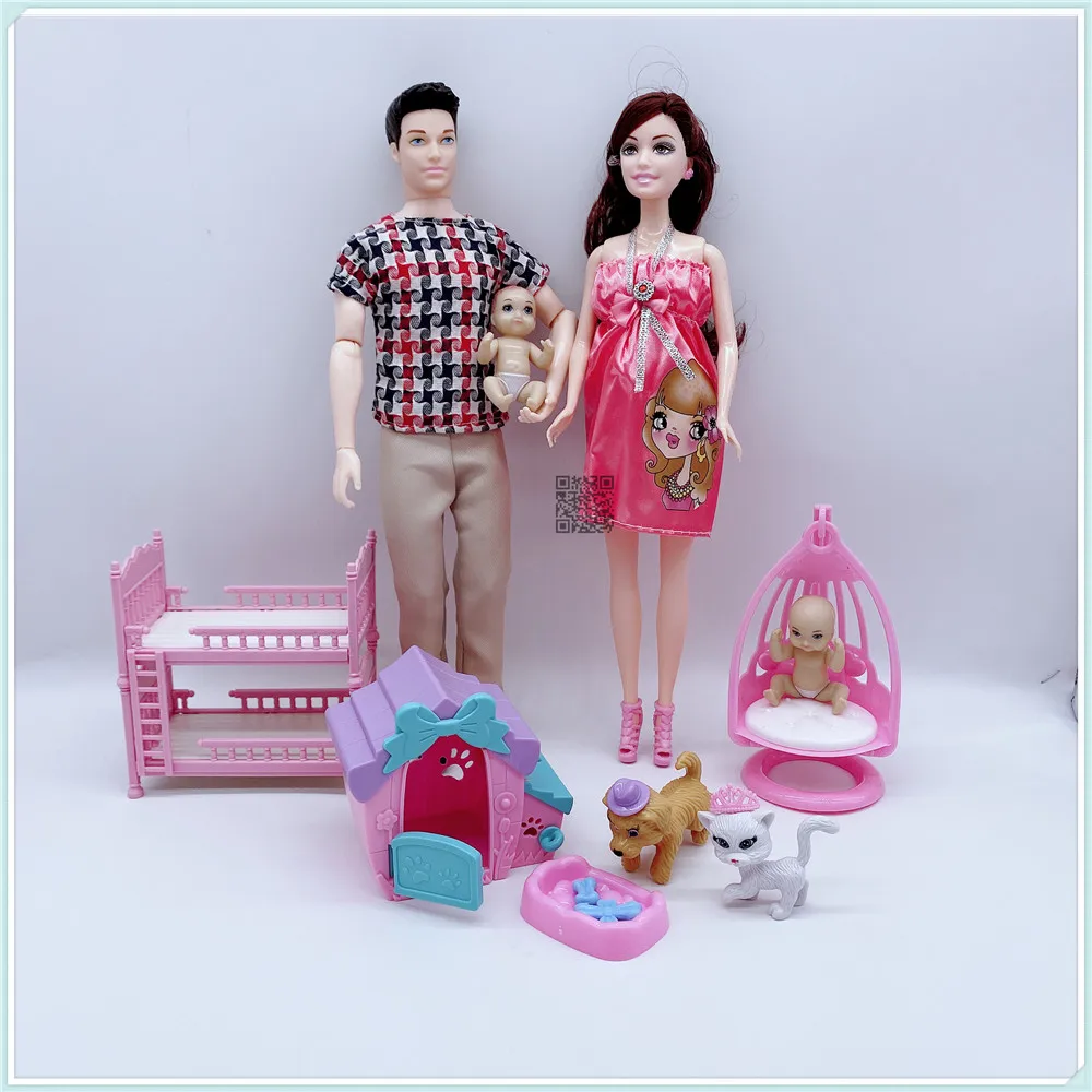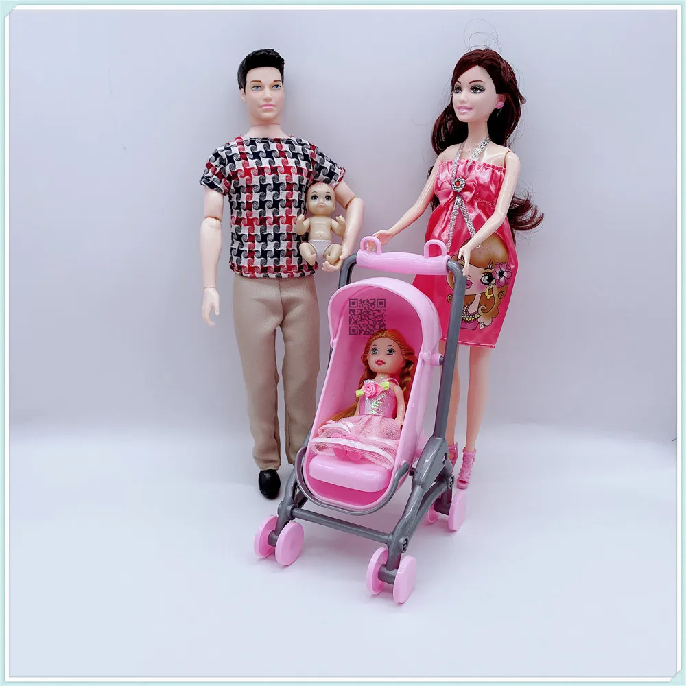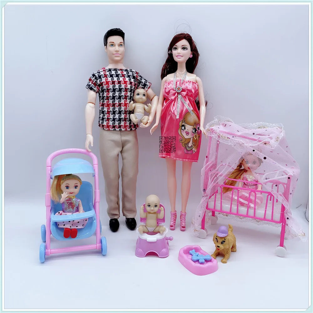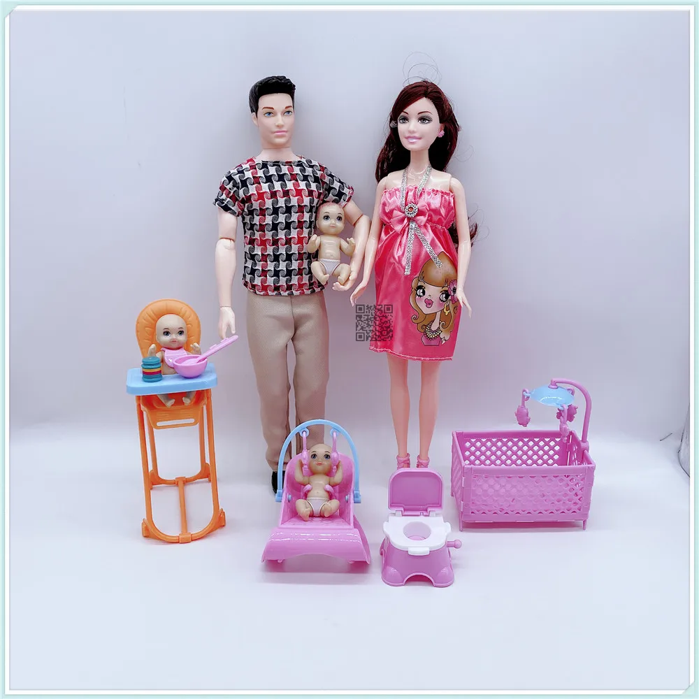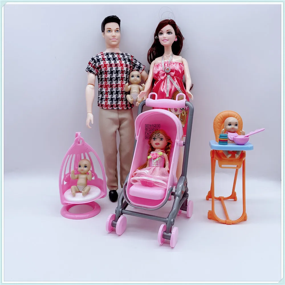 Модная детская коляска 6 happy family 11,5 "для беременных Барби + 3,5" детская коляскаДетская кроваткаобеденный стул Детская Игрушка аксессуары в подарок