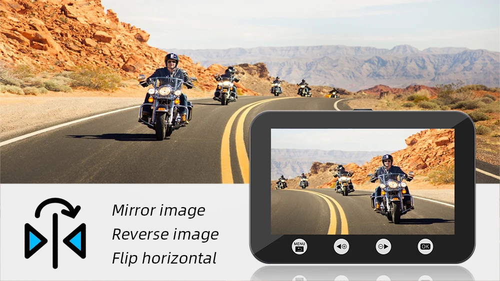 Цифровой видеорегистратор рассчитывает скорость движения в режиме реального времени, время вождения и пробег (расстояние поездки), общий пробег (пробег) с помощью дополнительного GPS-трекера, отображаемого на 4,5-дюймовом экране высокой четкости, что дает вам доступ в режиме реального времени к ключевой информации о вашем поездка.● Для проверки общего пробега (одометра) необходимо войти в настройки меню.