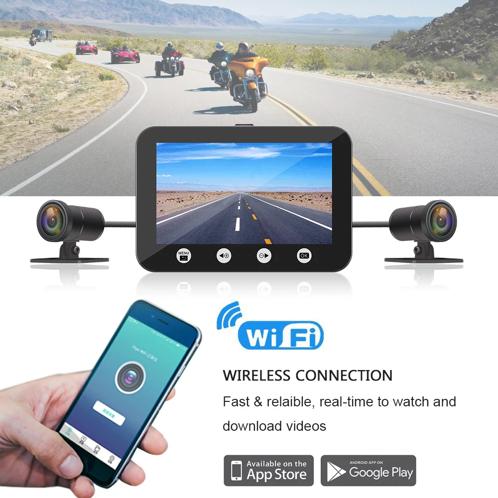 2 раздельные камеры с каждым стандартным удлинителем 2,0м для записи переднего и заднего вида. Один на передней и другой на задней части вашего велосипеда, который будет записывать все, что происходит перед вами и за вами все время. Идеально подходит для мотоциклов, скутеров, автомобилей, UTV, ATV и любых других транспортных средств.