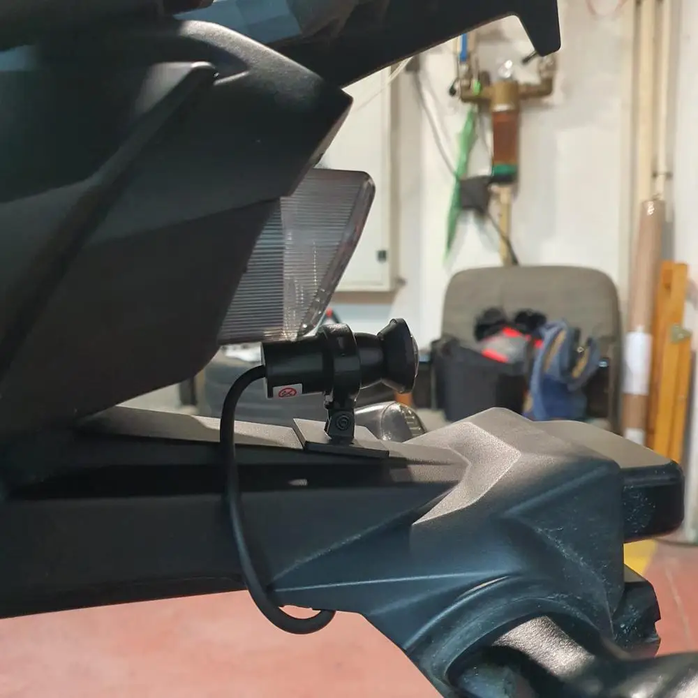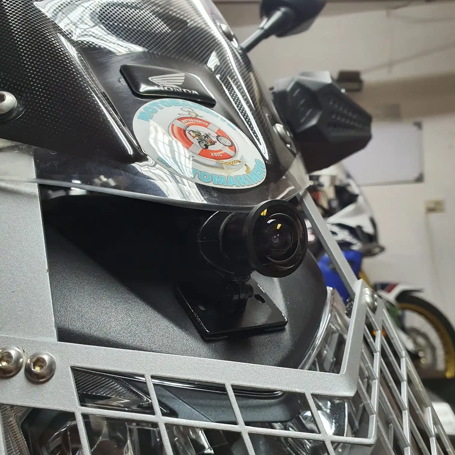 Это жестко привязано к байку. Основной блок крепится к рулю (с прикрепленным креплением на руль) или под сиденьем. Отдельная небольшая камера фиксируется двухсторонней пенопластовой лентой и может крепиться винтами. Это просто для скрытой установки, не будучи замеченным, что отличается от шлема или экшн-камеры. Горизонтальные и вертикальные углы объектива можно легко отрегулировать, чтобы получить лучший угол обзора.