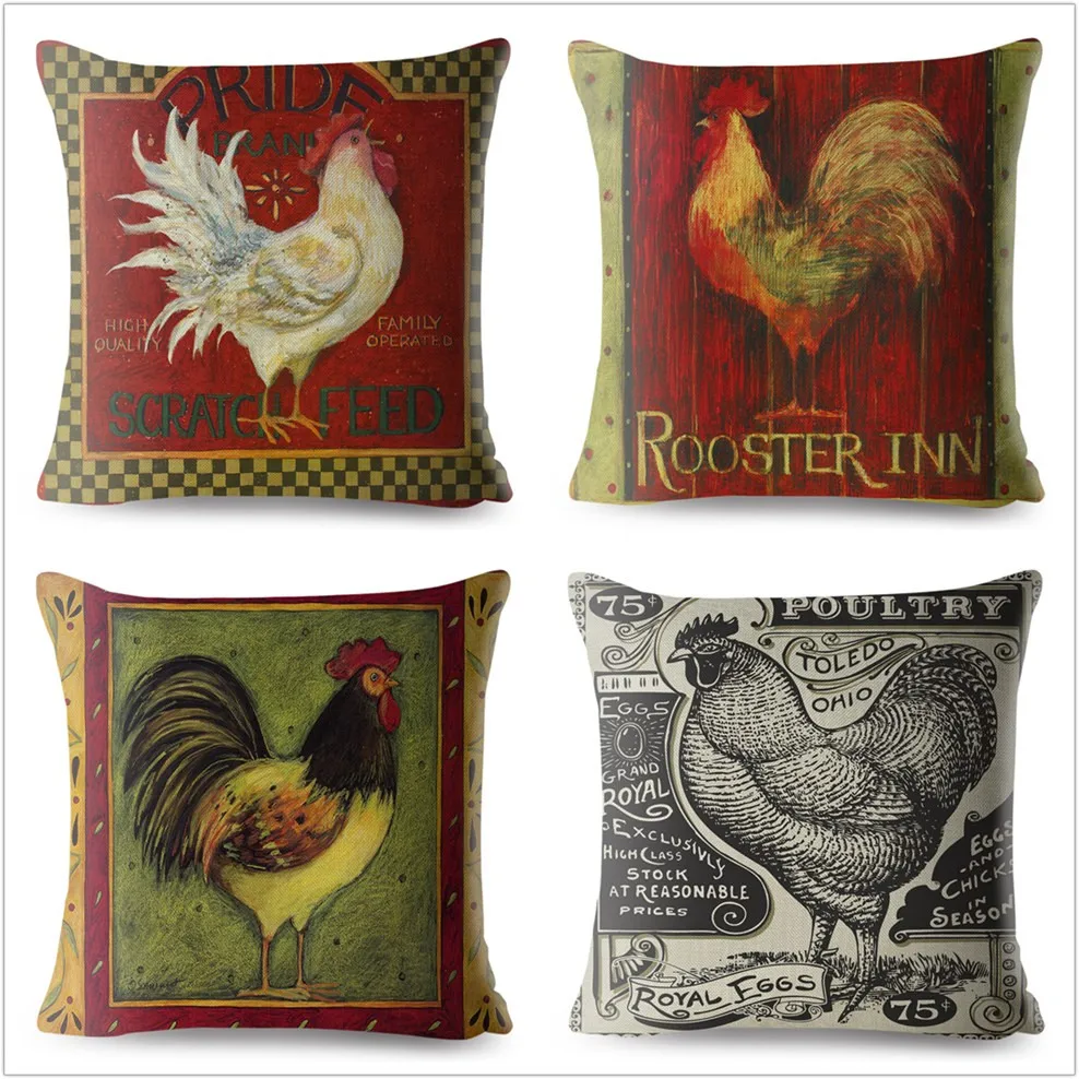 Винтажный дизайн, Курица Петух Чехол для подушки с принтом 45*45, льняные наволочки для подушек, наволочки для дивана наволочка для домашнего декора